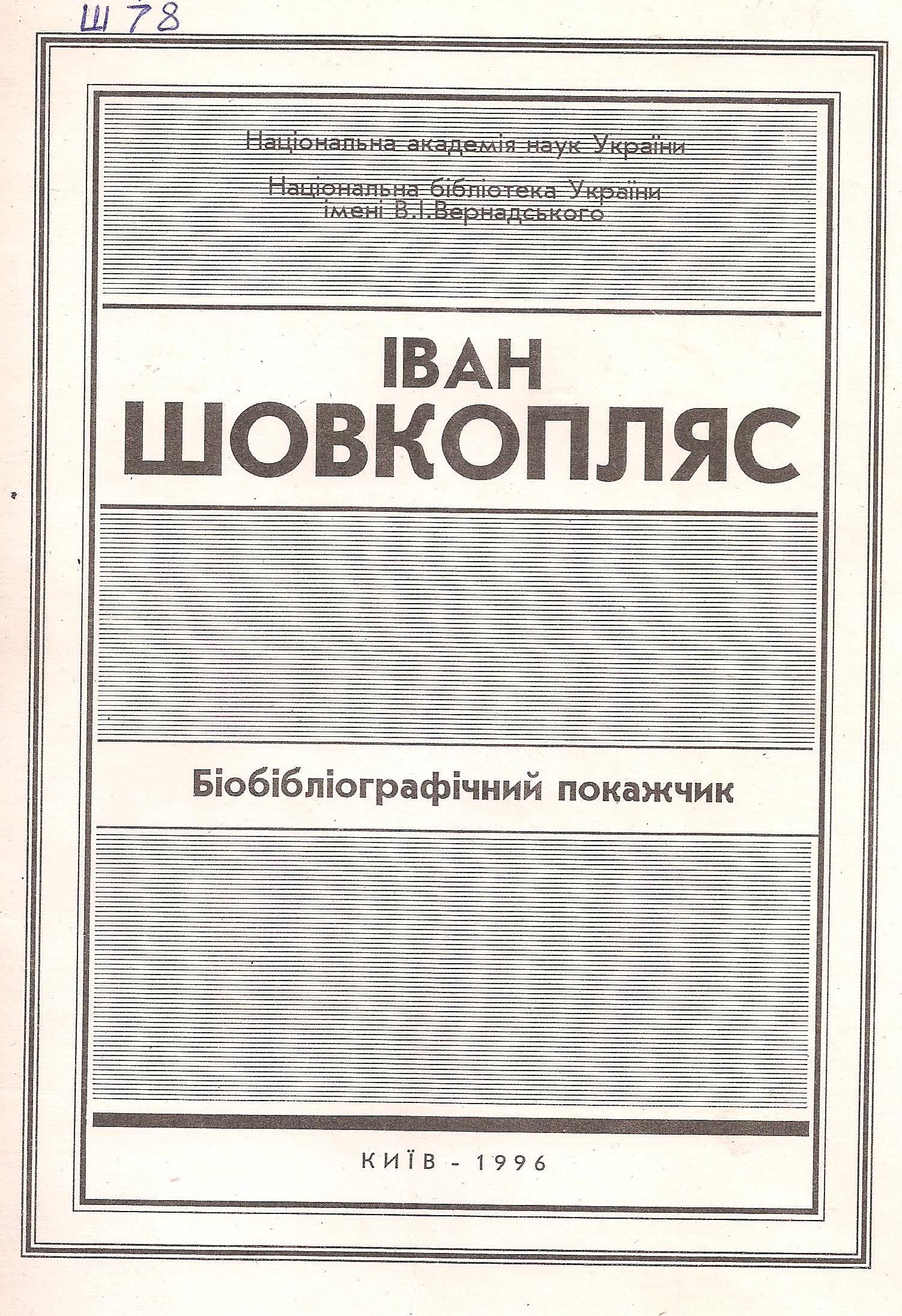 Іван Шовкопляс : біобібліографічний покажчик / Нац. б-ка України ім. В. І. Вернадського ; уклад. М. А. Воробей ; авт. вступ. ст. О. С. Онищенко. – Київ, 1996. – 87 с.