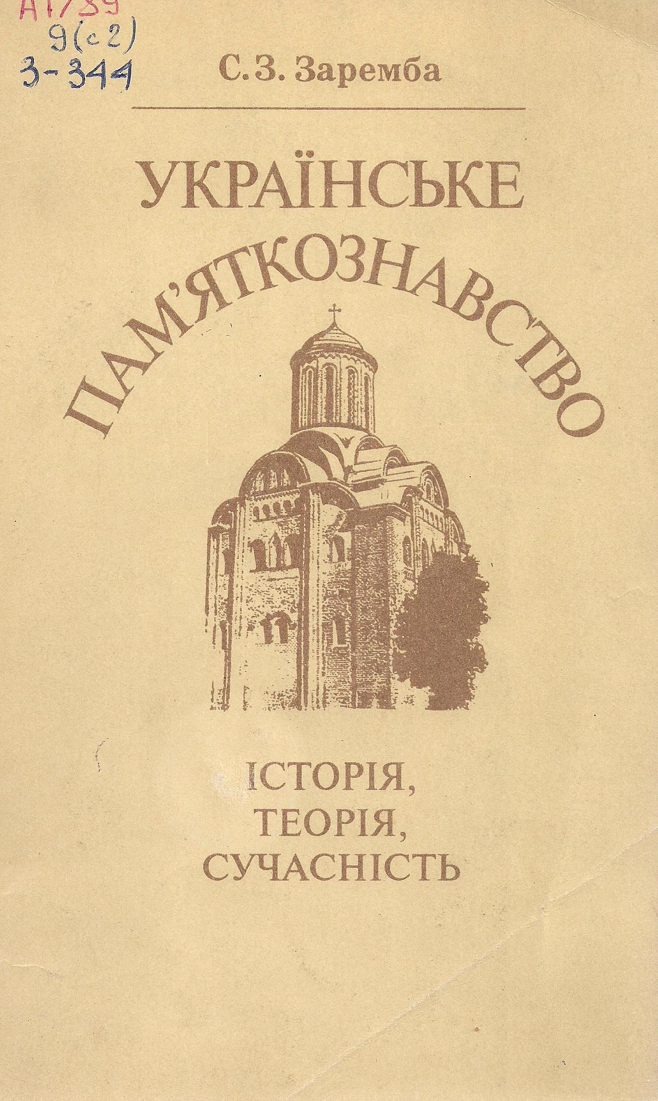 Заремба С. З. Українське пам’яткознавство: історія, теорія, сучасність / С. З. Заремба ; Центр пам’яткознавства Національної академії наук України та Українського товариства охорони пам’яток історії і культури. – Київ : Логос, 1995. – 446 с.