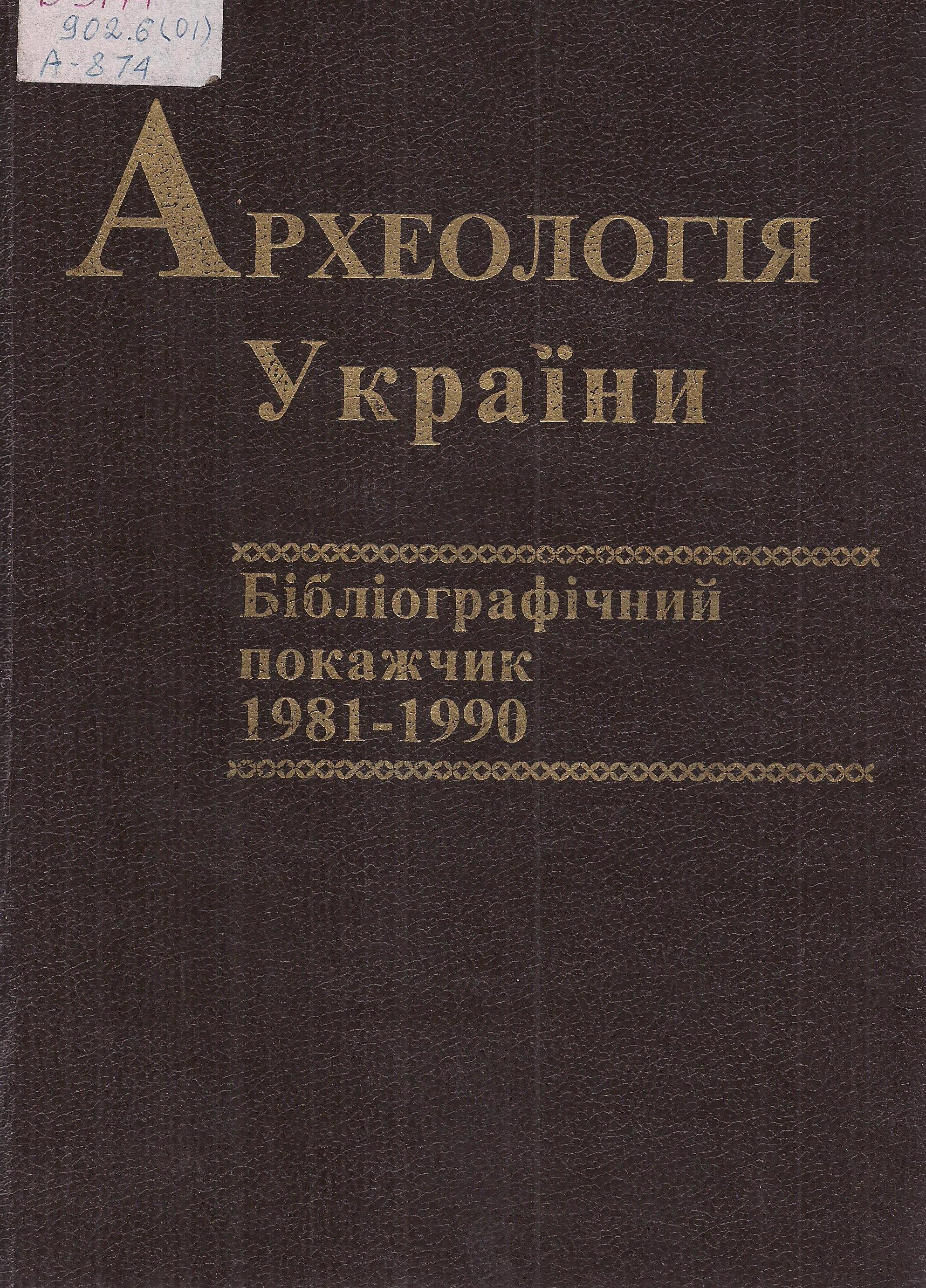 Археология Украинской ССР : библиографический указатель, 1918–1980 / АН УССР, ЦНБ им. В. И. Вернадского ; сост.: Шовкопляс И. Г., Дмитриенко Н. Г. – Киев : Наукова думка, 1989. – 558, [1] с.