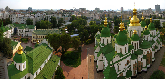 Софійський собор (1011 - 1037 рр). Одна з небагатьох уцілілих споруд часів Київської Русі. До Національного заповідника "Софія Київська", крім собору, належать "Золоті Ворота", Андріївська церква та Кирилівська церква в Києві.