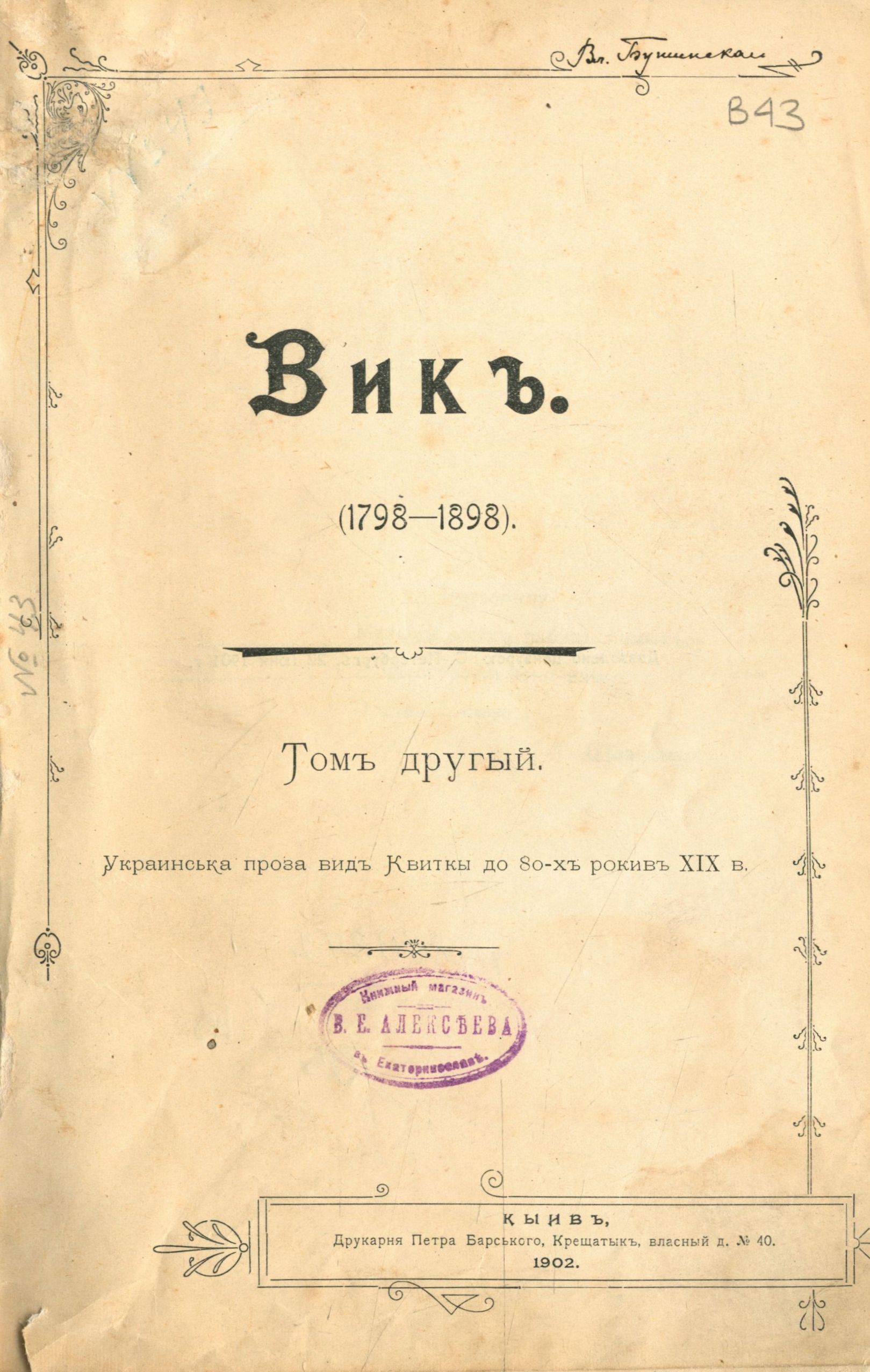 7. Стефаник В. С. Кленови лысткы // Вік (1798-1898). Т.3. Украинская проза в 80-х роках ХІХ в. до останних часив. – Киев : Друк. П. Барского, 1902. – С. 521-529.