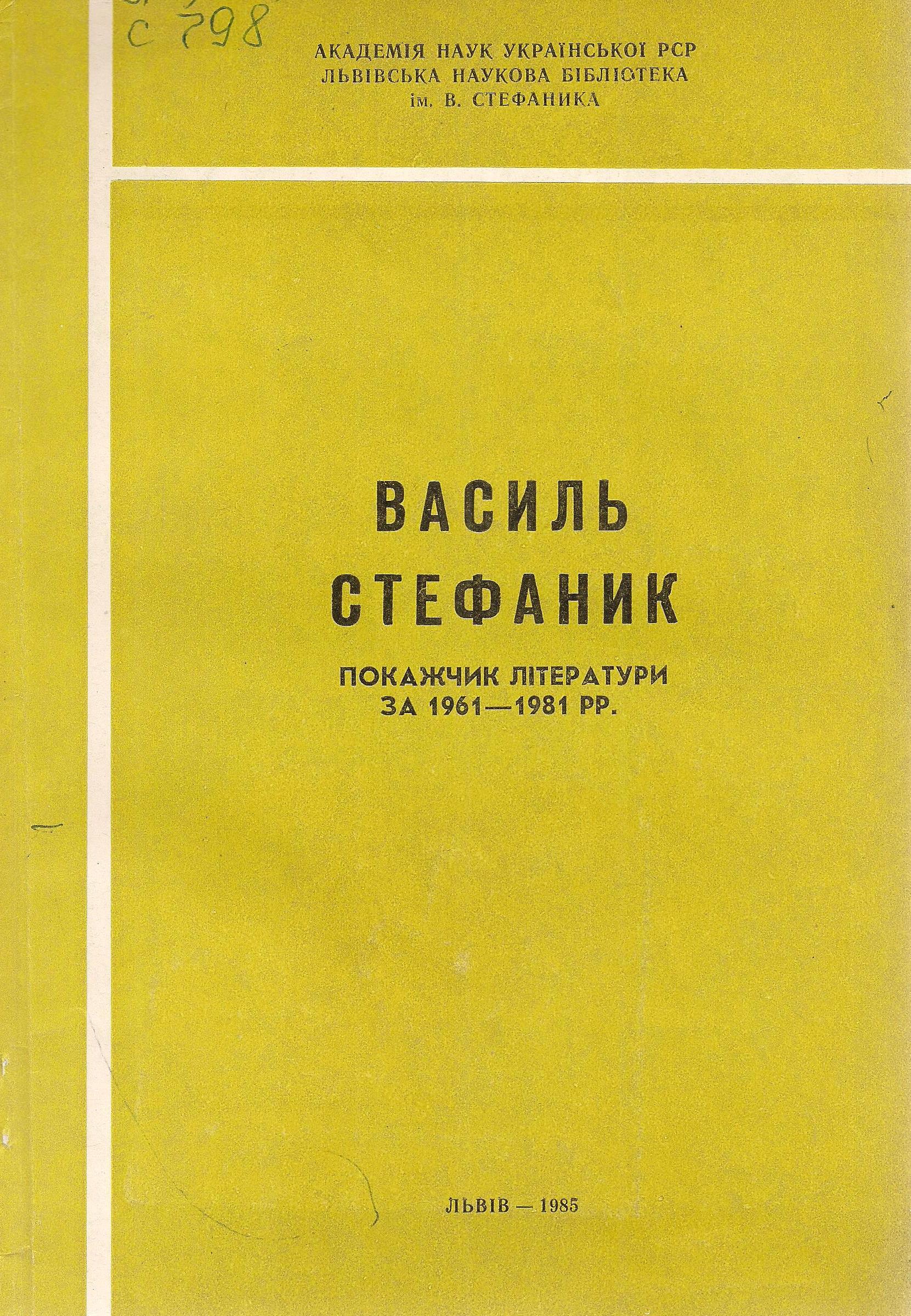 Василь Стефаник : покажчик літератури за 1961–1981 рр. / Акад. наук Укр. РСР, Львівська наукова бібліотека ім. В. Стефаника ; уклад. Л. І. Ільницька. – Львів : Львівська наукова бібліотека Академії наук УРСР, 1985. – 131 с.
