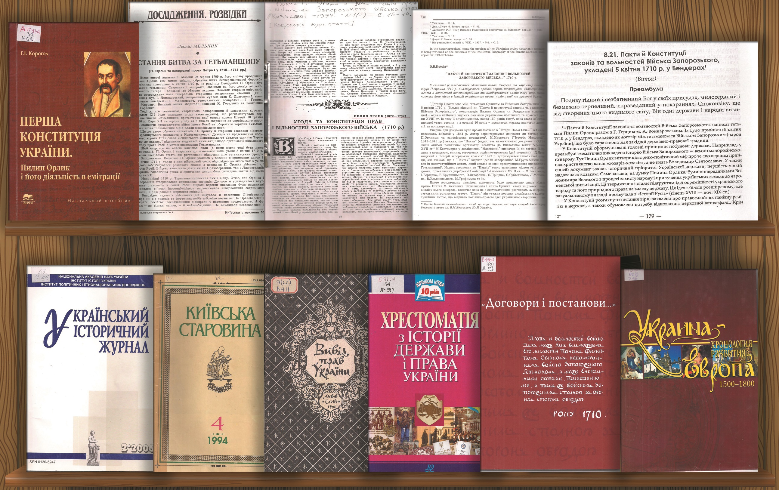 33. Угода та Конституція Пилипа Орлика // Мазепа : зб. – Київ, 1993. – С. 226-236. Шифр: 9(с2) / М 135.