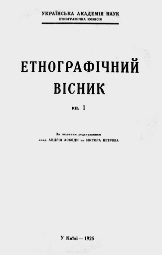 Лобода Андрій, акад. Сучасний стан і чергові завдання української етнографії / А. Лобода // Етнографічний вісник. Кн. 1 / ред. : А. Лобода, В. Петров. - Київ, 1925. - С. 1-11.