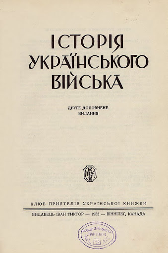 Історія українського війська / І. Крип’якевич [та ін.]. - 2-е вид., допов. - Вінніпег : Клюб приятелів Укр. книжки, 1953. - 850 с. розд. паг. : іл.