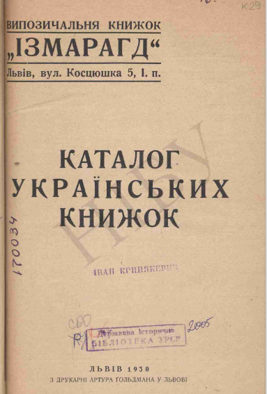 Каталог українських книжок. - Львів : З друк. А. Гольдмана, 1930. - С. 13