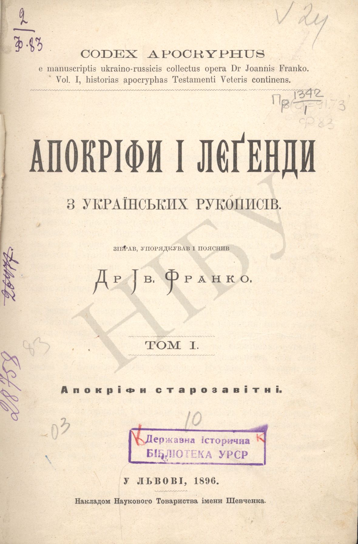 Т. 1. Апокріфи старозавітні. – 1896. – ІІ, LXVI, 394 с.