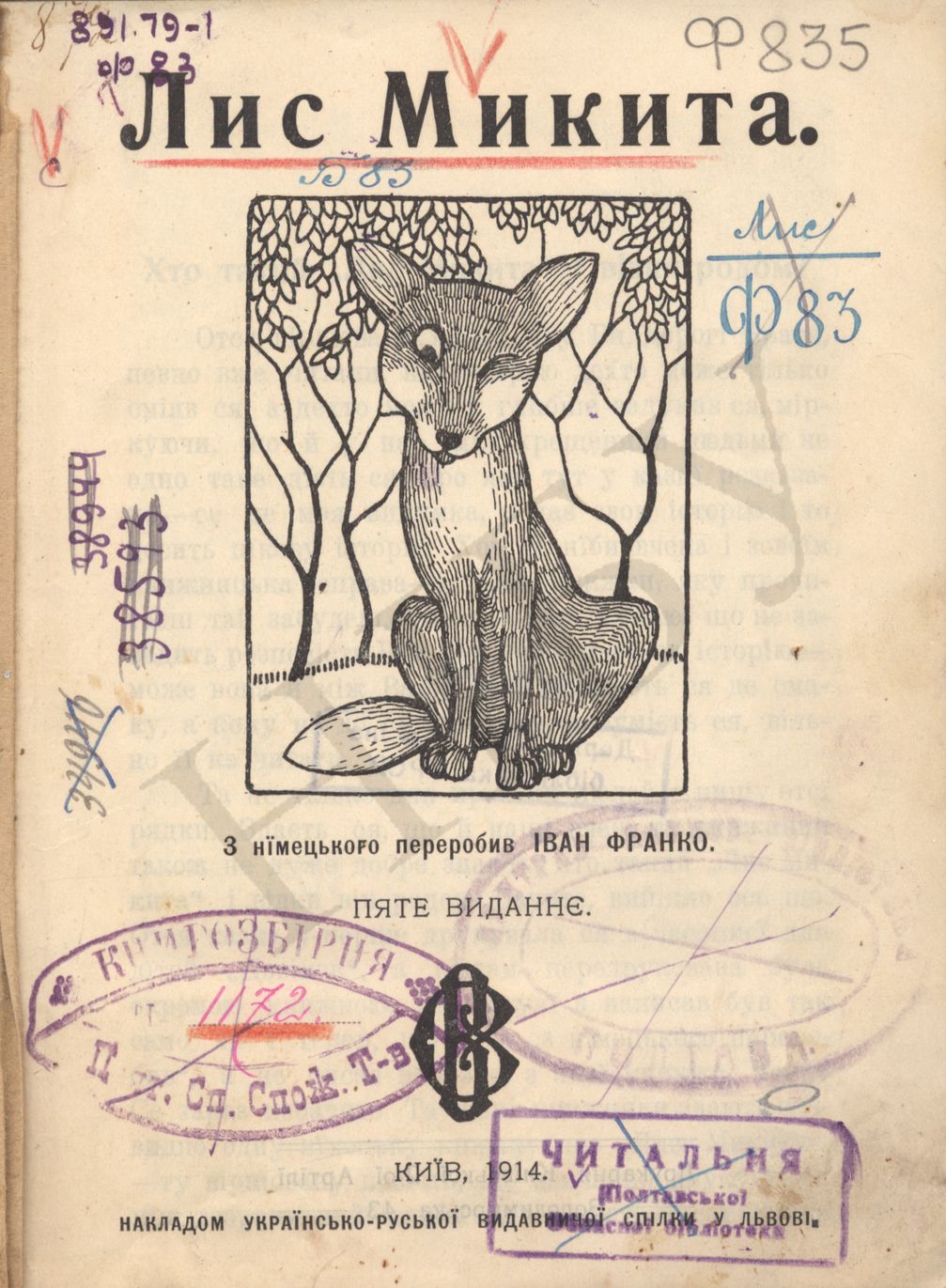 15. Франко І. Я. Лис Микита / І. Я. Франко. -5-е вид. – Київ : Друк. Київ. 2-ої Артілі, 1914. – 152 с.
