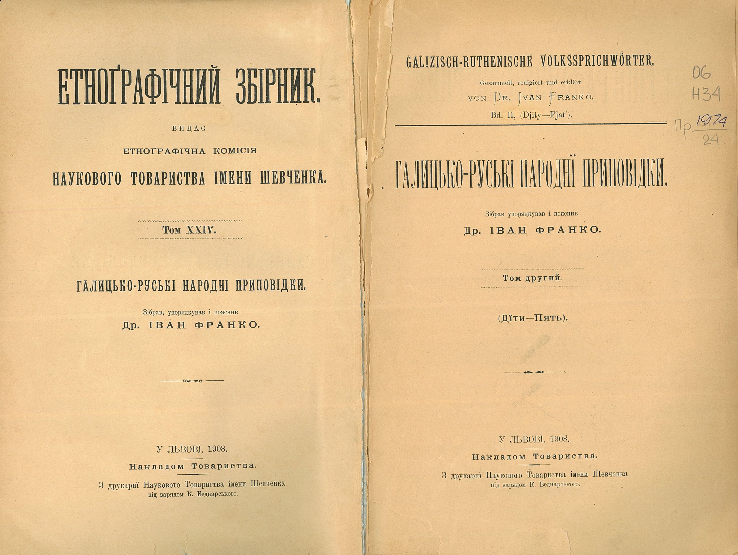 Праця І. Я. Франка, надрукована в Етнографічний збірнику НТШ, стала першим українським дослідженням паремій (прислів'їв, приказок тощо) узагальненого характеру. Письменник зібрав та дослідив 31091 приказку, і це найбільш повне до нашого часу зібрання.