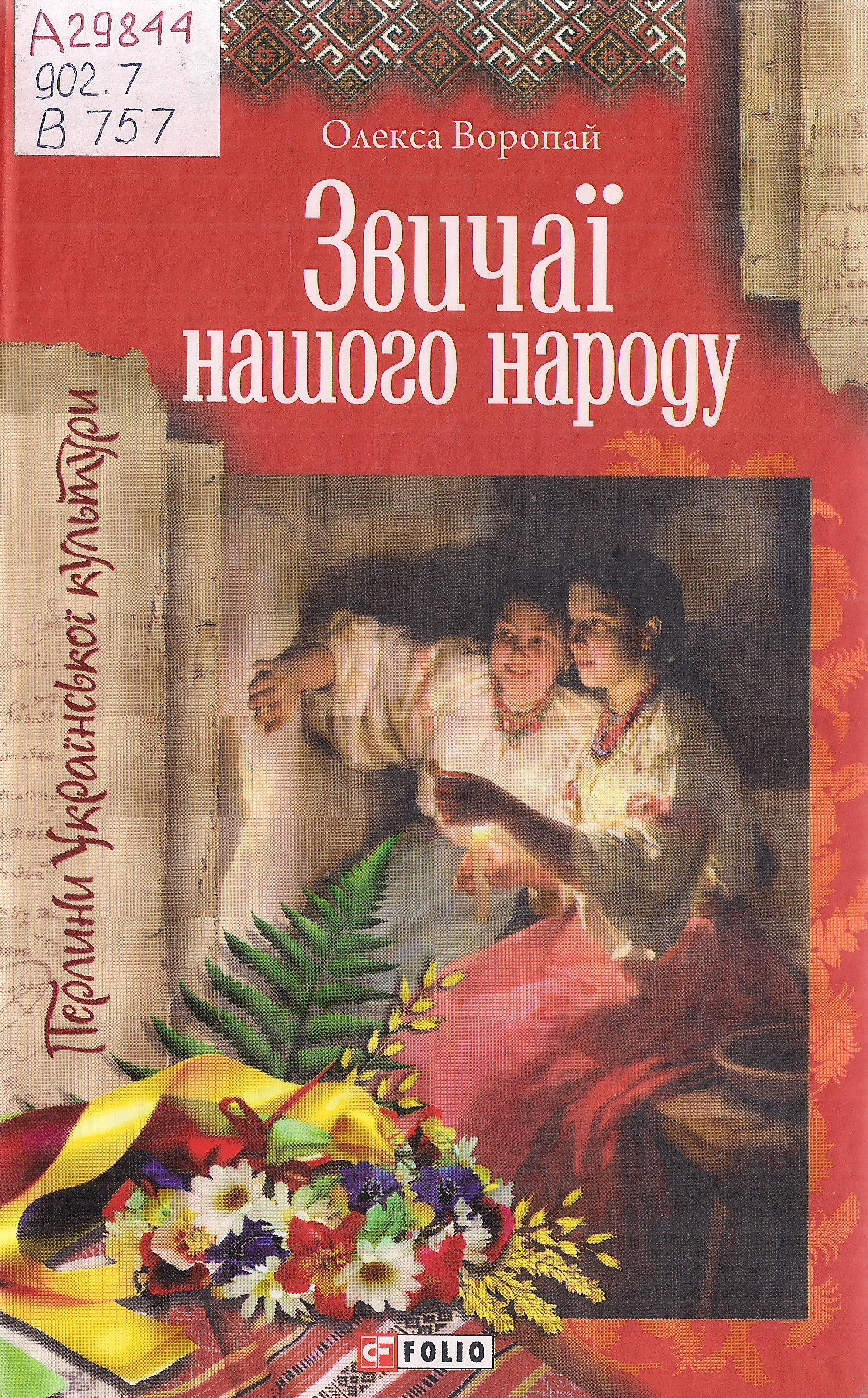 Воропай О. Звичаї нашого народу : етнографічний нарис / О. Воропай. – Харків : Фоліо, 2013. – 508 с.