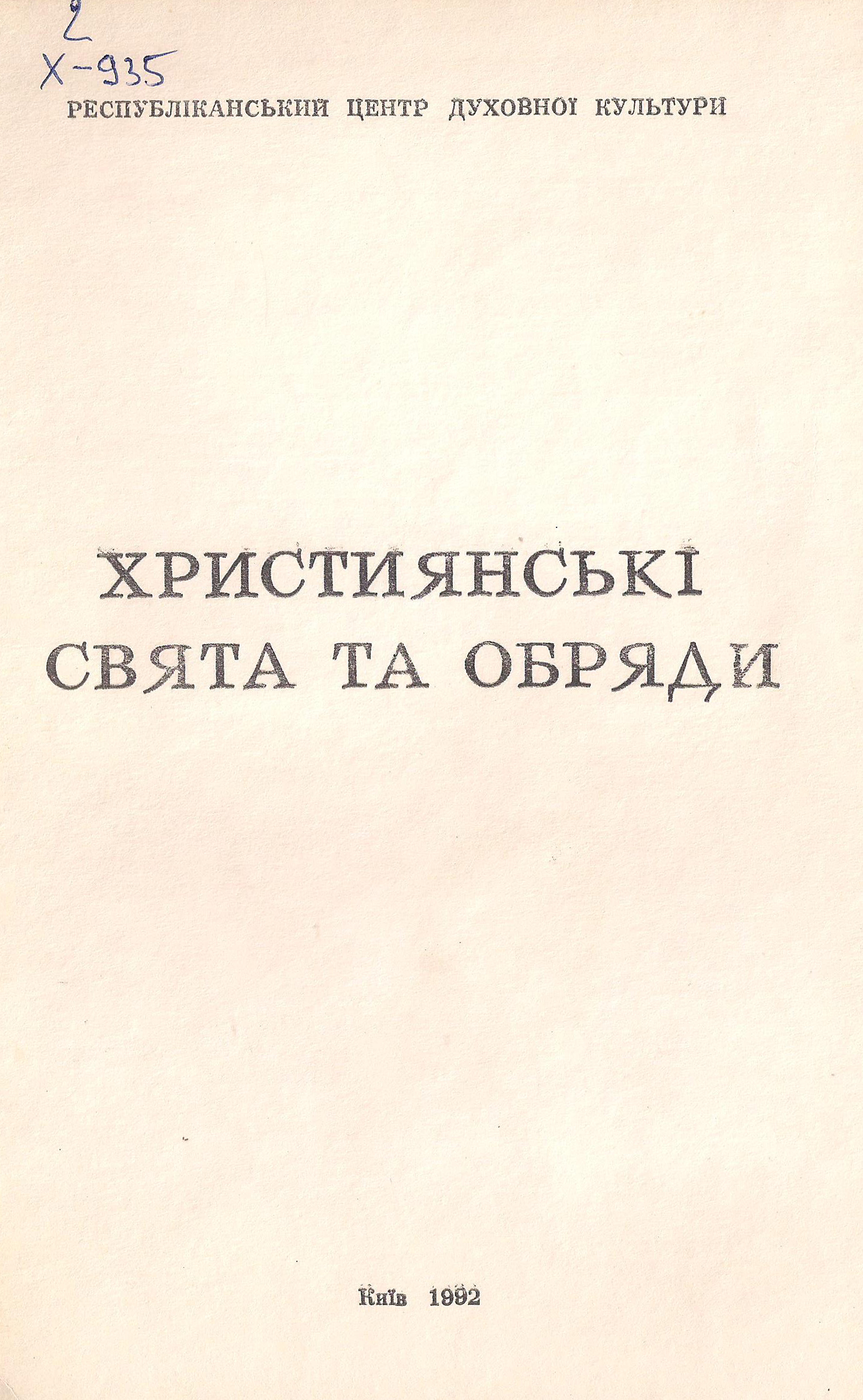 Християнські свята та обряди / Республіканський Центр духовної культури ; підгот. М. Р. Новиченко. – Київ, 1992. – 21 с.