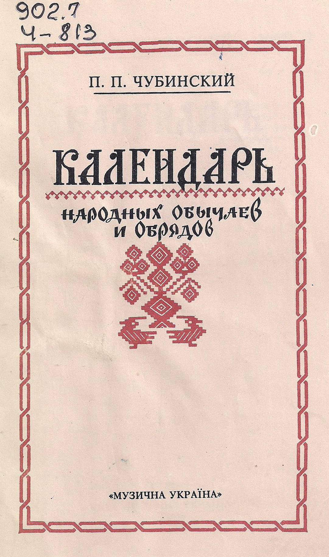 Чубинский П. Календарь народных обычаев и обрядов / П. Чубинский. – Киев : Музична Україна, 1993. – 78 с.