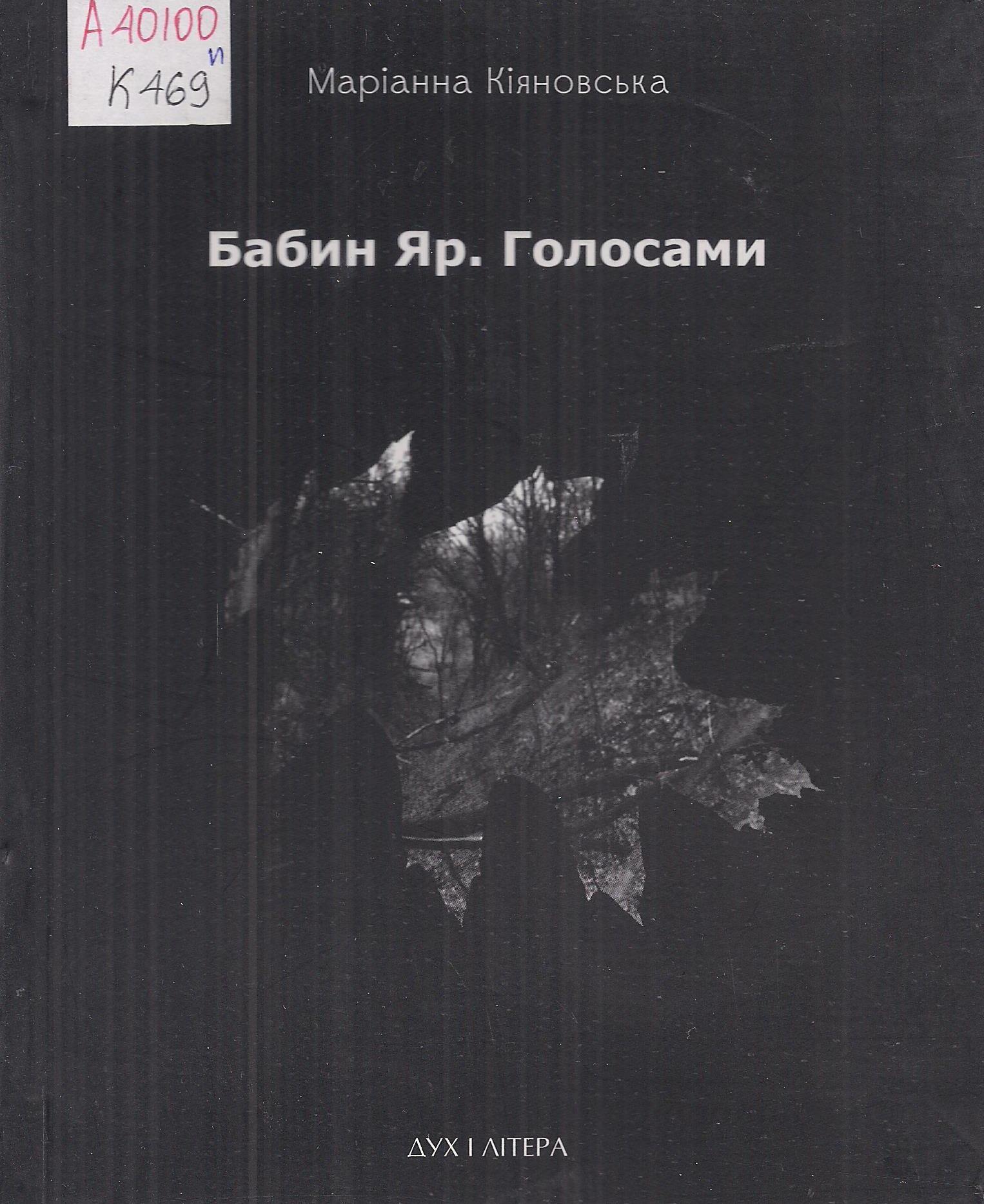 - Кіяновська М. Бабин Яр. Голосами / М. Кіяновська. – Київ : ДУХ І ЛІТЕРА, 2017. – 108, [3] с.
