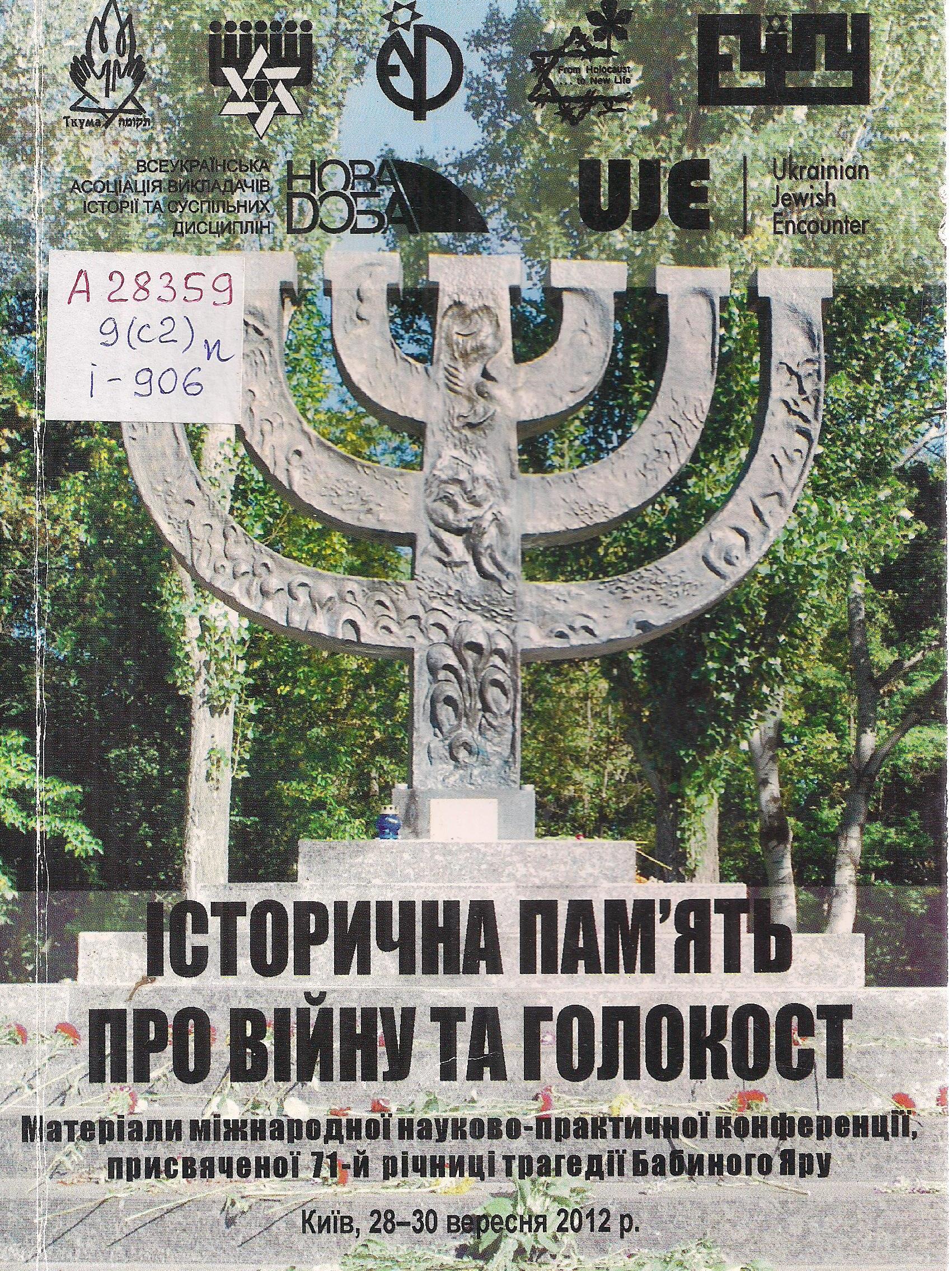 - Історична пам’ять про війну та Голокост : матеріали міжнародної науково-практичної конференції, Київ, 28-30 вересня 2012 р.: присвячено 71-й річниці трагедії Бабиного Яру. – Дніпропетровськ : Ткума, 2013. – 260 с.
