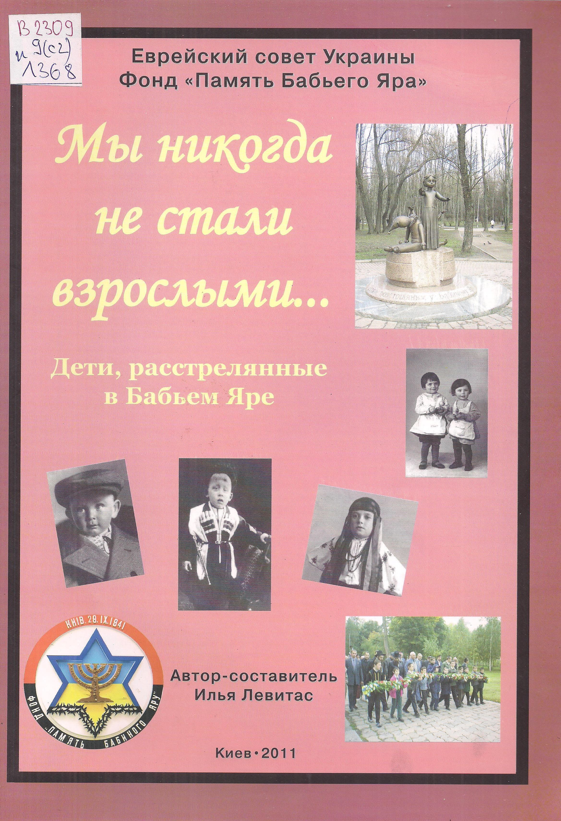 - Левитас И. Мы никогда не стали взрослыми... : дети, расстрелянные в Бабьем Яре / И. Левитас ; Еврейский совет Украины, Фонд «Память Бабьего Яра». – Киев, 2011. – 68 с.