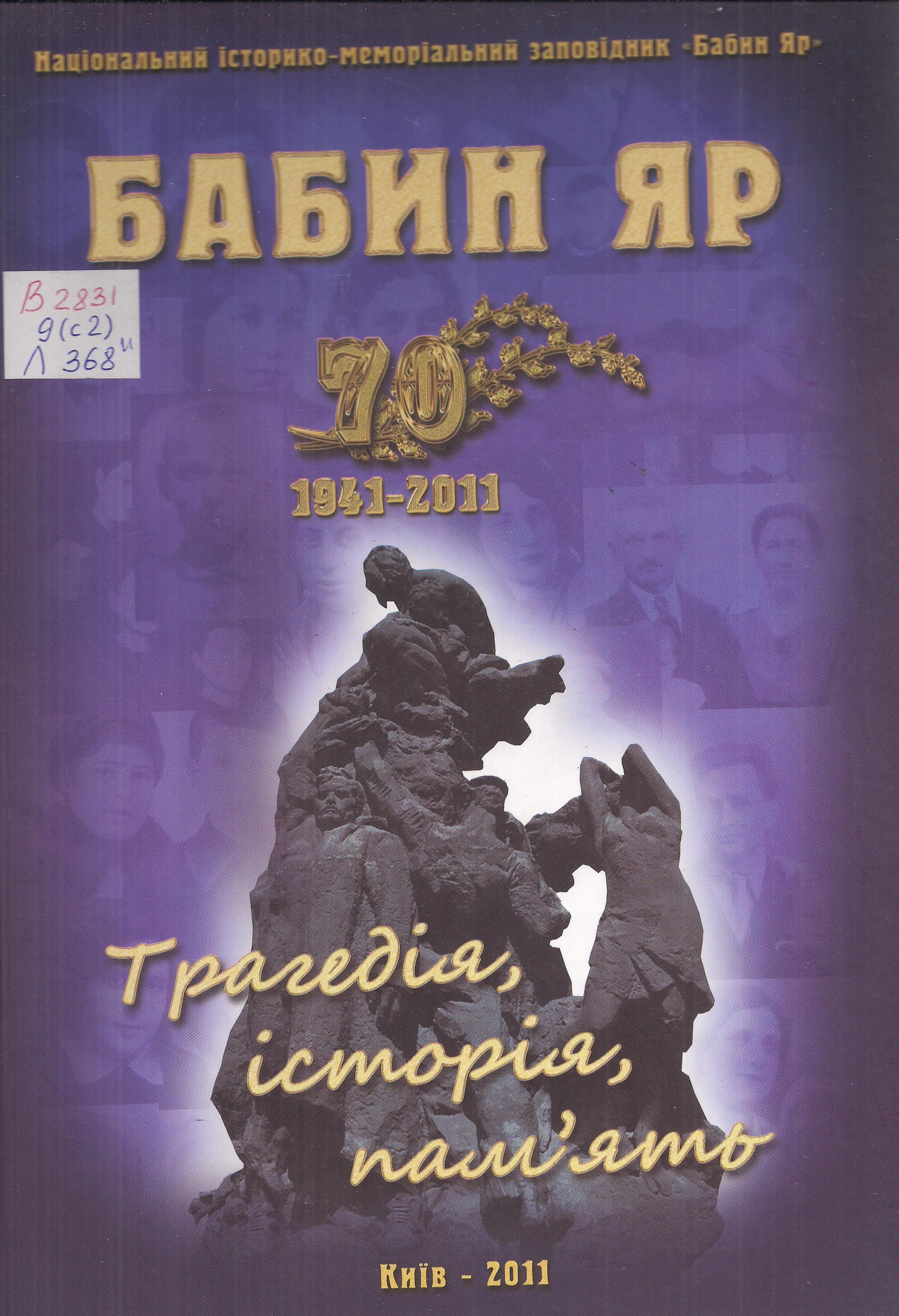 - Національний історико-меморіальний заповідник Бабин Яр / Нац. историко-мемор. заповедник «Бабий Яр». – Київ, 2011. – 24 с.