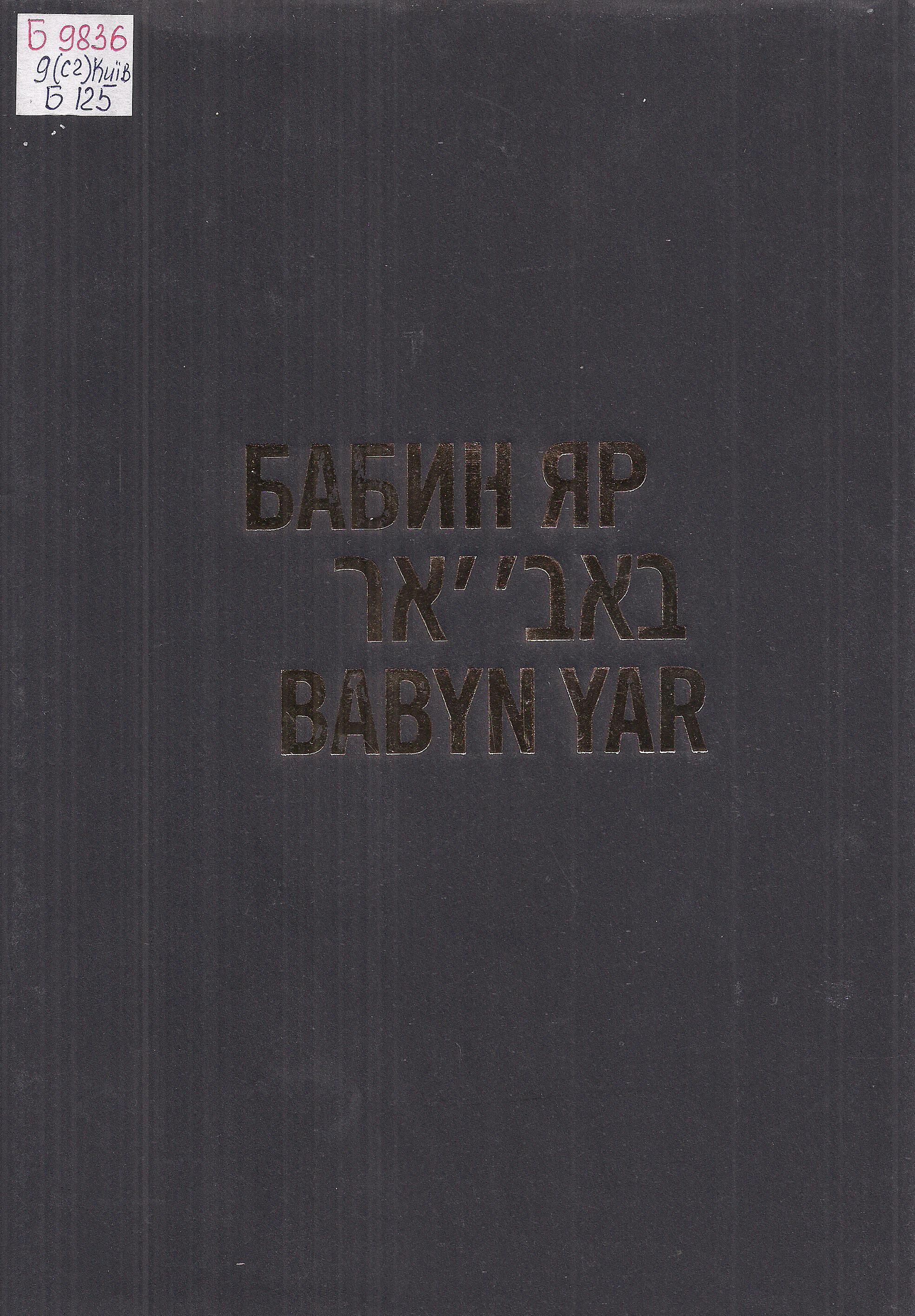 - Книга памяти : Бабий Яр / Еврейский совет Украины, Киевское о-во еврейской культуры фонд «Память Бабьего Яра» ; сост. И. М. Левитас. – Киев, 1999. – 300 с.