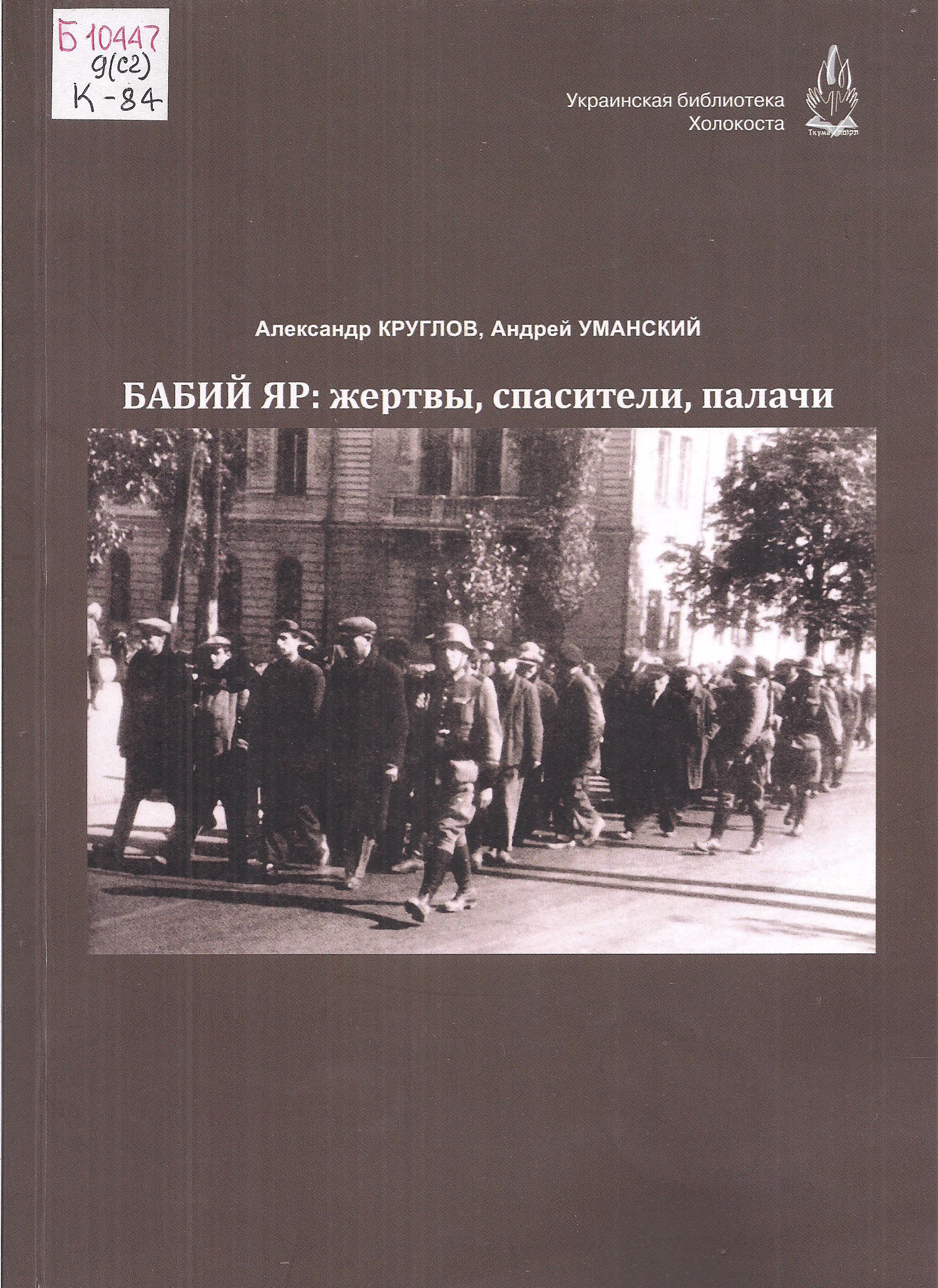 - Круглов А. Бабий Яр: жертвы, спасители, палачи / А. Круглов, А. Уманский. – Днипро : Ткума, 2019. – 275, [4] с.