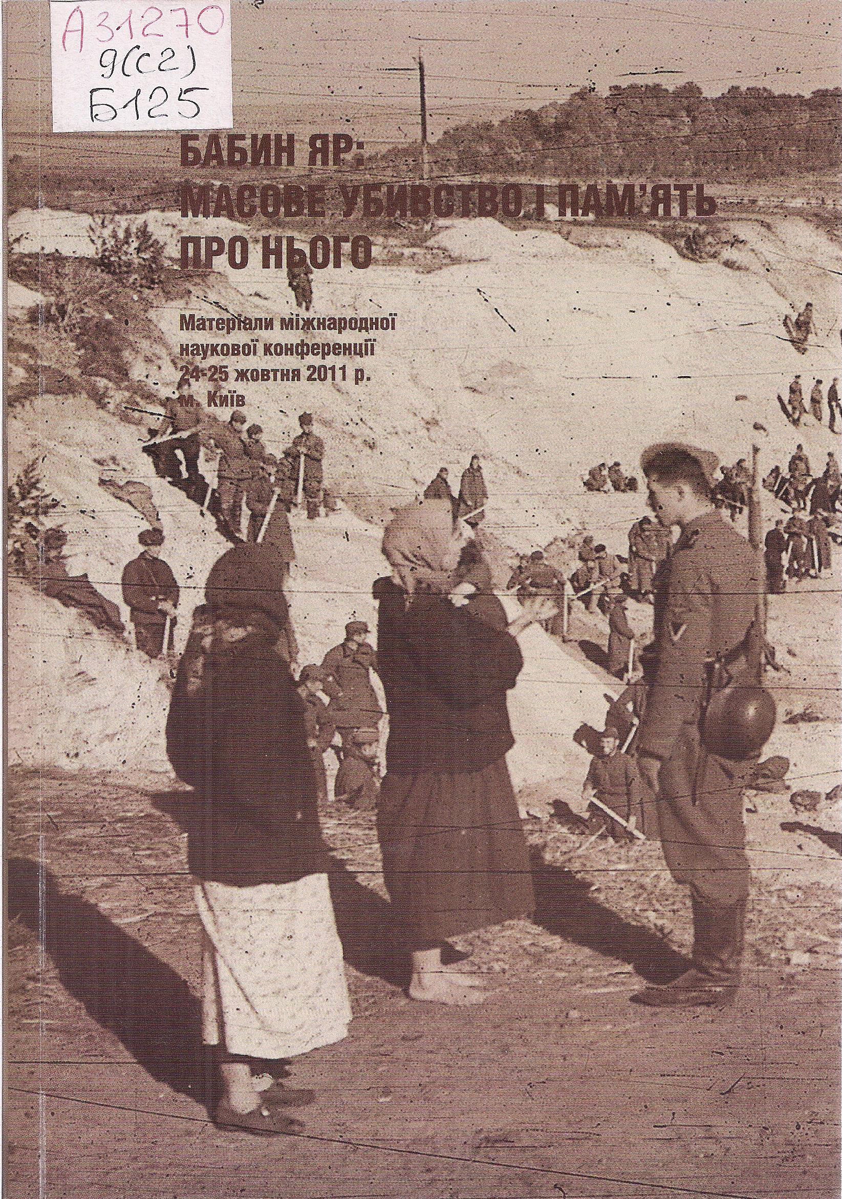 - Бабин Яр : масове убивство і пам’ять про нього : матеріали міжнародної наукової конференції, 24-25 жовтня 2011 р., м. Київ / Український центр вивчення історії Голокосту, Громадський комітет для вшанування пам’яті жертв Бабиного Яру ; наук. ред. В. Нахманович. – Київ : Український центр вивчення історії Голокосту, 2012. – 254 с.