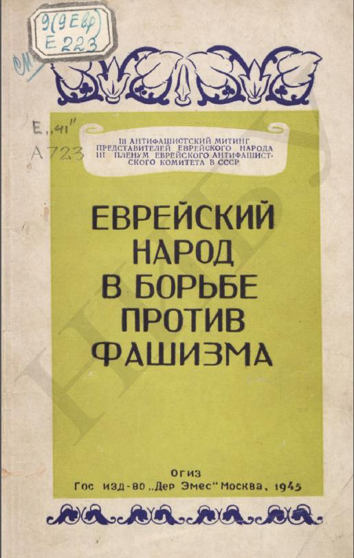 Еврейский народ в борьбе против фашизма [Електронний документ] : материалы 3 антифашистского митинга представителей еврейского народа и 3 пленума еврейского антифашистского комитета в СССР / ред. М. Альтшулер. – Москва : Дер Эмес, 1945. – [147] с.
