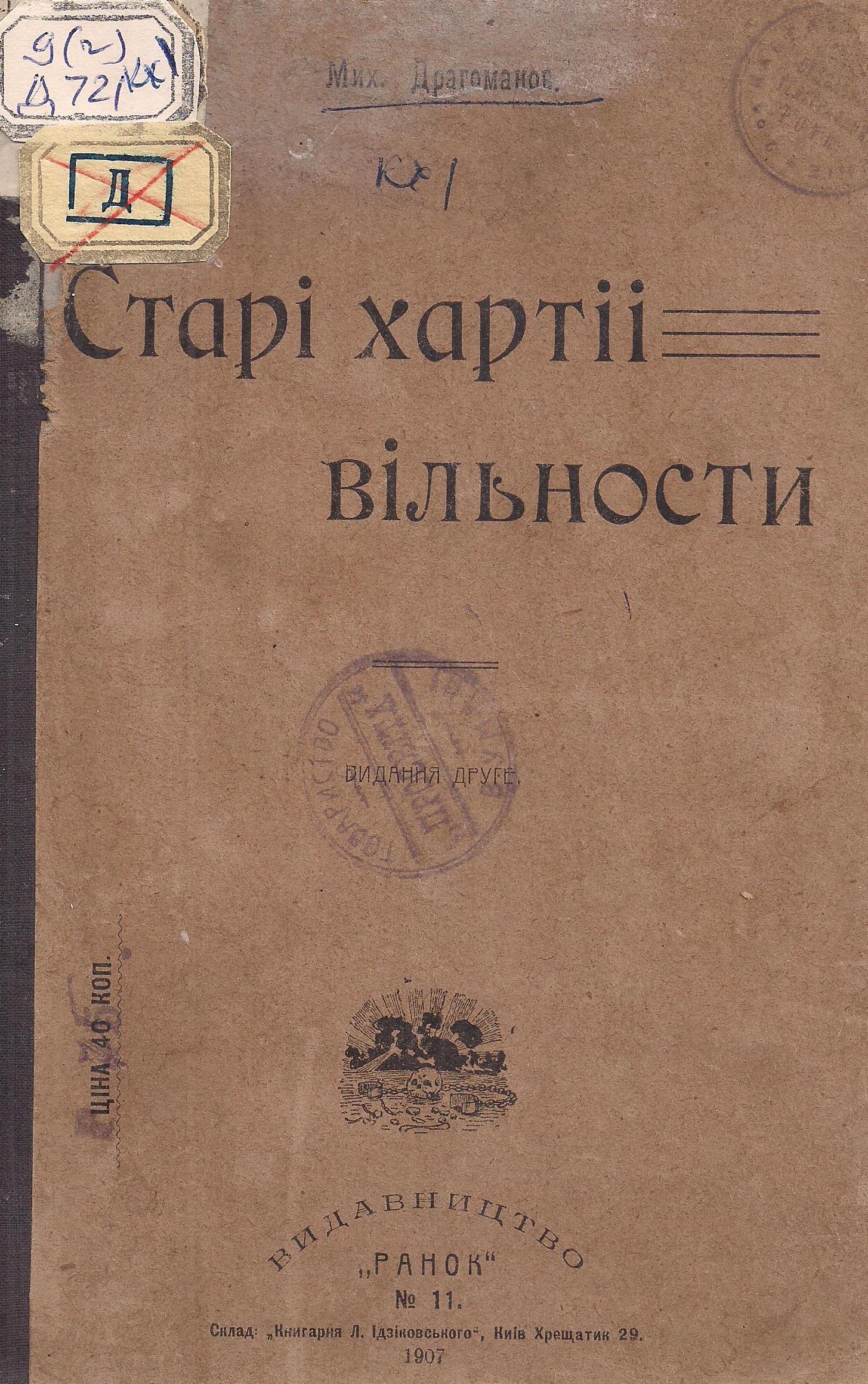 - Драгоманов М. Старі хартії вільності : історичні нариси / М. Драгоманов. – Київ : «Ранок», 1907. – 84 с.