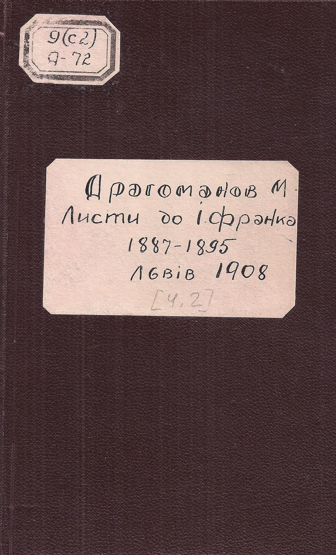 - Драгоманов М. Листи до Ів. Франка і інших. 1887-1895 / М. Драгоманов ; видав Іван Франко. – Львів : Накладом Укр.-рус. вид. спілки, 1908. – 444 с.