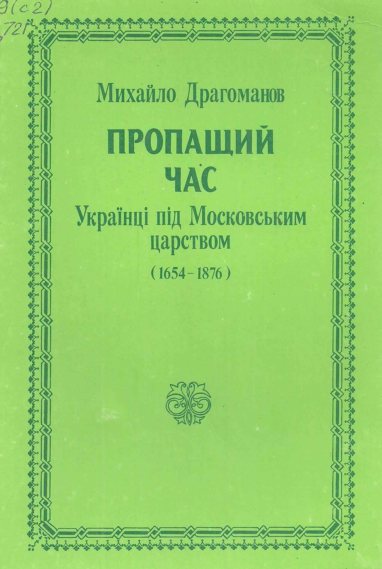 - Драгоманов М. Пропащий час : українці під Московським царством (1654–1876) / М. Драгоманов. – Київ : Центр пам’яткознавства АН України і УТОПІК, 1992. – 46 с.