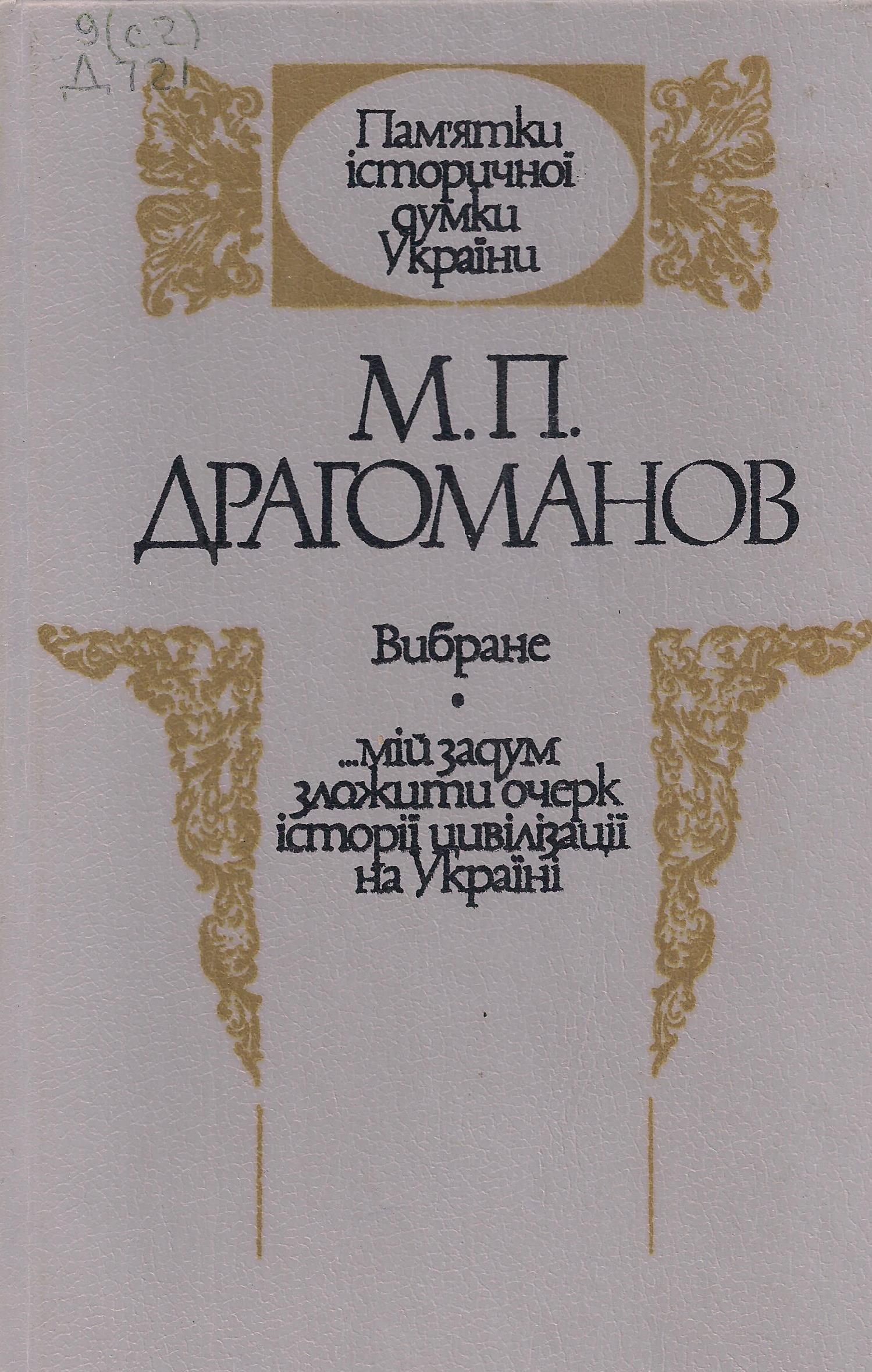 - Драгоманов М. Із наукової спадщини. Кн.1: Політологія. Культурологія / М. Драгоманов. – Київ : Знання України, 2010. – 594 с.