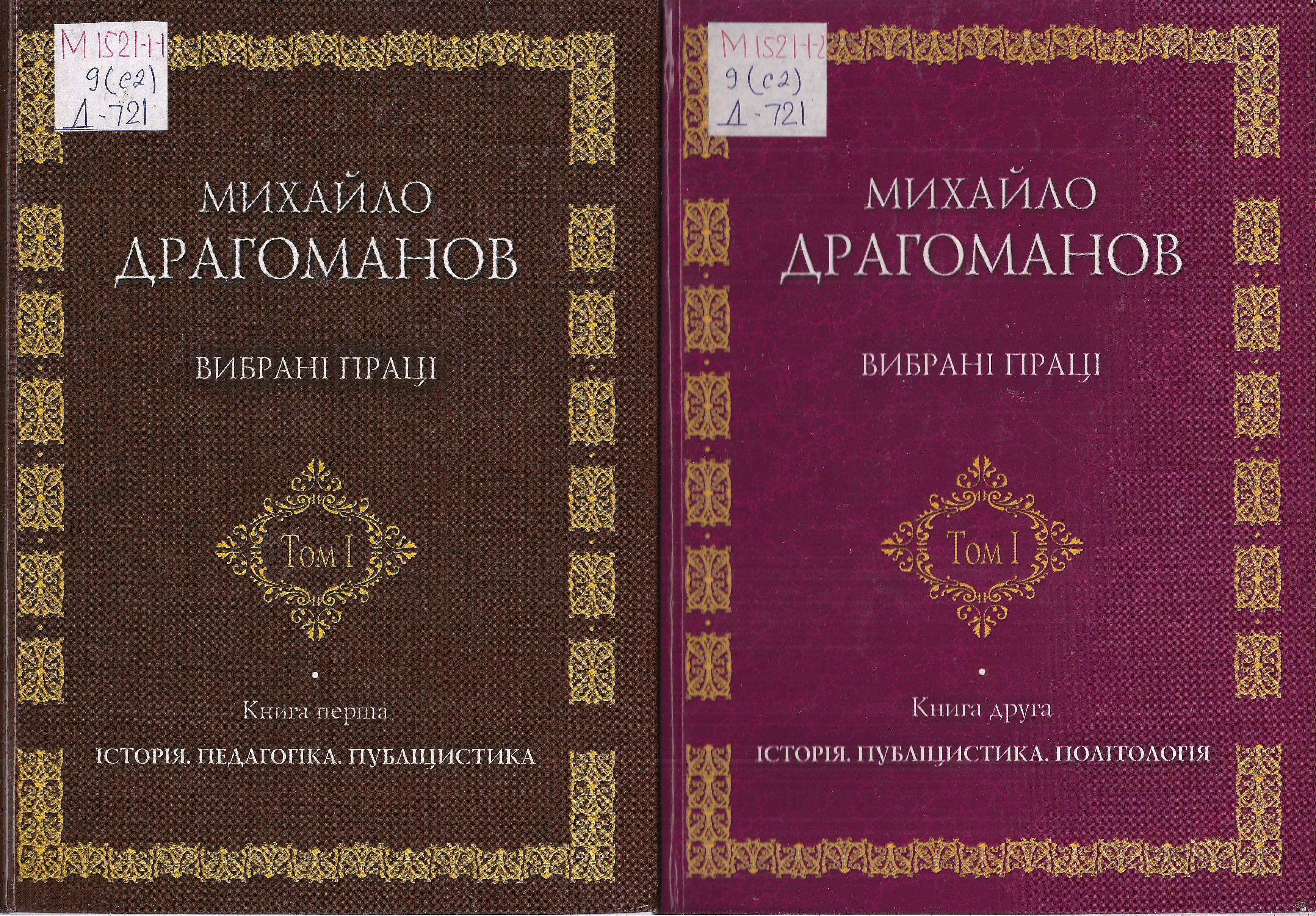 - Драгоманов М. Вибрані праці : у 3 т. Т. 1. Кн. 2: Історія. Публіцистика. Політологія / М. Драгоманов. – Київ : Знання України, 2007. – 270 с.