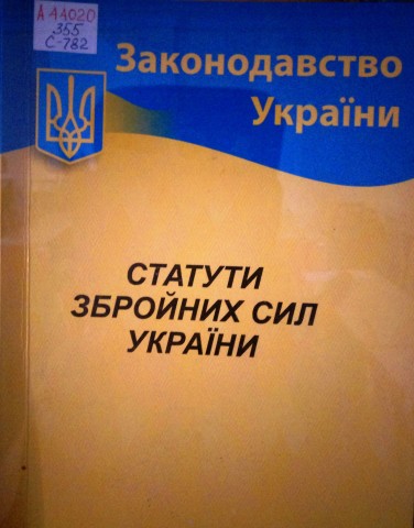 - Статути Збройних Сил України : (зб. Законів): відповідає офіц. тексту: нормат. документи з урахуванням останніх змін в ред. станом на 07.02.2021 р. – Суми : ТОВ «ВВП НОТІС», 2021. – 430 с. Шифр А44020/355/С782