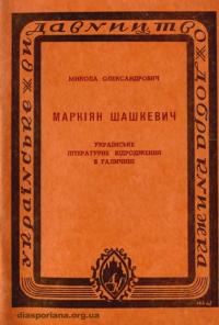 - Олександрович М. Маркіян Шашкевич. Українське літературне відродження в Галичині / М. Олександрович. - Торонто : Добра книжка, 1961. - 60 с.