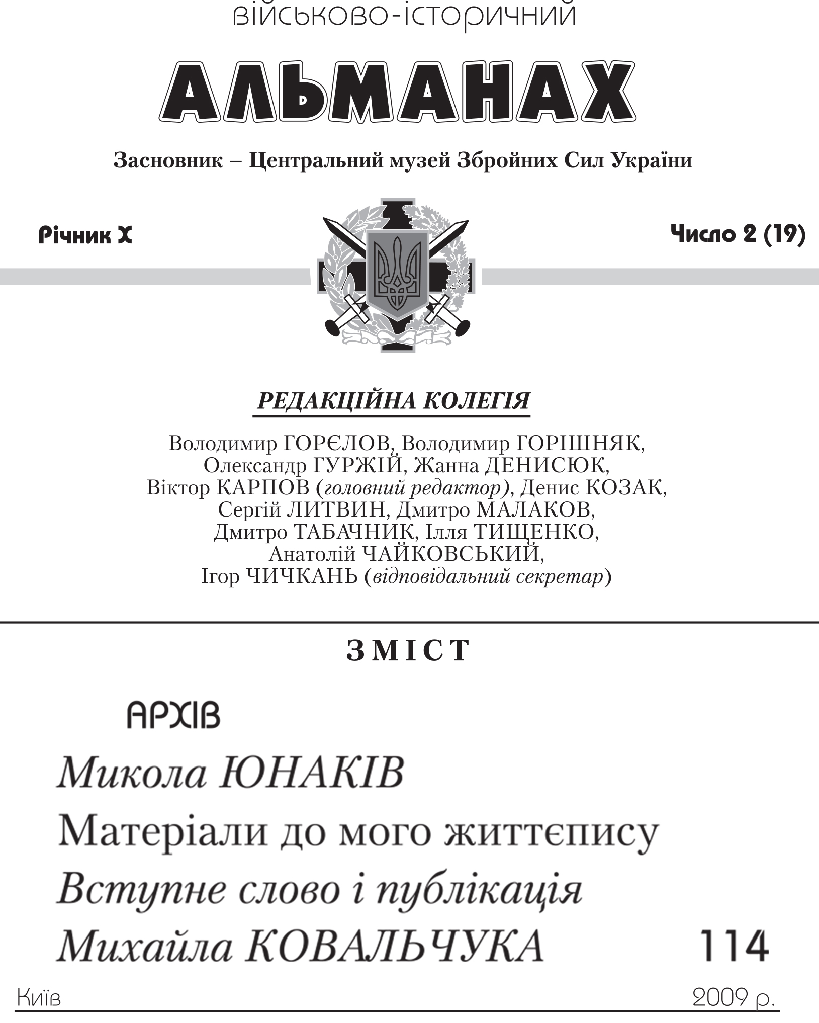 Увазі читачів пропонується автобіографія М. Юнаківа, написана в 1930 р. на еміграції в Польщі. Цей матеріал було надруковано у паризькому тижневику «Тризуб» вже після смерті генерала (Тризуб. – Ч. 31 – 32 (289-290). – 1931. – 30 серп. – С. 3 – 10). Попри те, що автобіографія містить не лише цінні відомості про життєвий шлях генерала М. Юнаківа, але й важливу інформацію про обставини розгортання українського військового руху в 1917 р., ця публікація вже багато десятиліть залишається практично невідомою для дослідників [33].