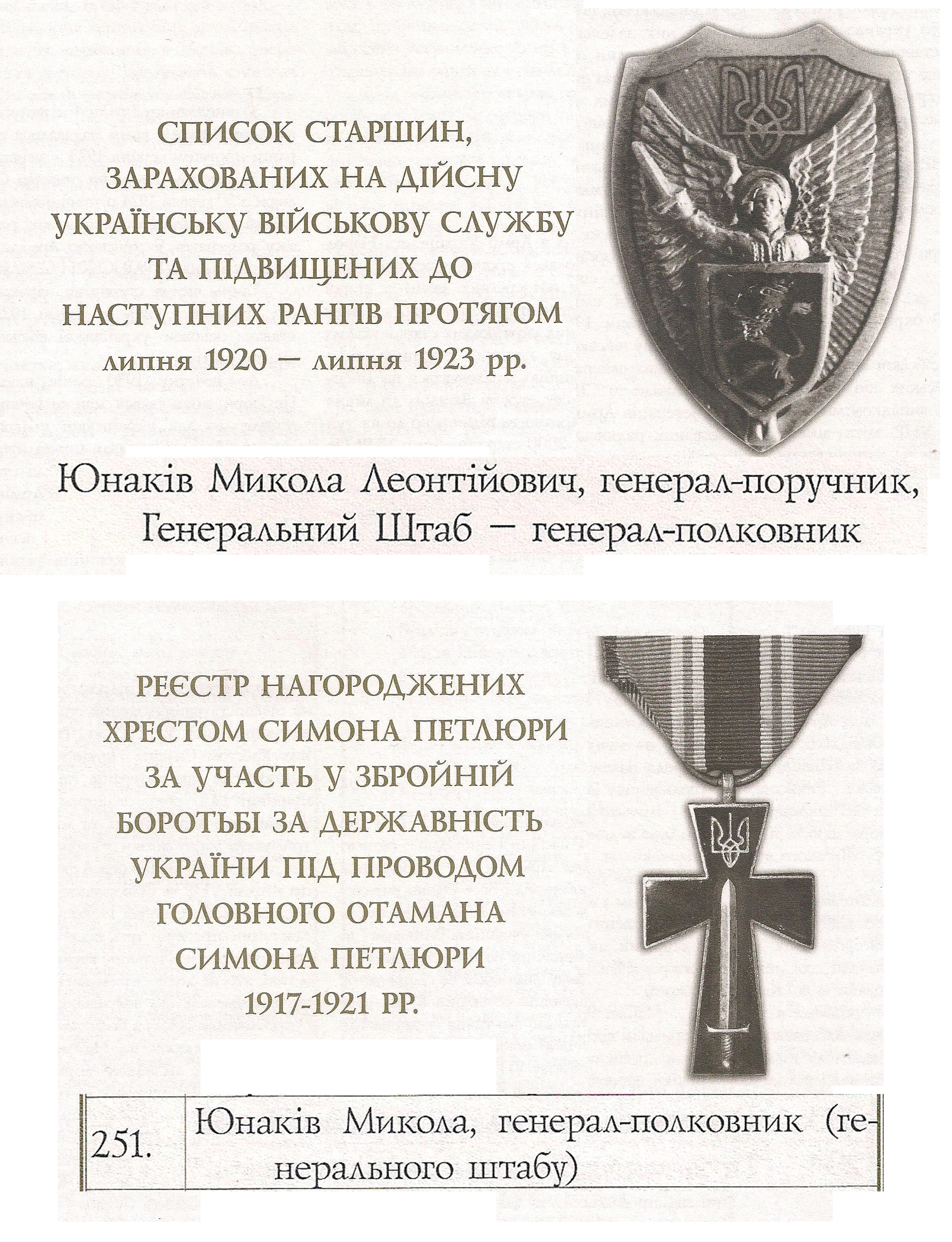 - Юнаків Микола Леонтійович. Реєстраційна картка військового та громадського діяча, генерал-полковника Миколи Леонтійовича Юнакова, датована 30 вересня 1920 р. [Електронний ресурс] // Імена Самостійної України 1917 – 1924 : база даних Благодійної організації «Благодійний фонд «Героїка». – Режим доступу : http://www.db.geroika.org.ua/ua/person_card.html?code=ac92f50e9188f3d8f2e8cbf6f444cb6d