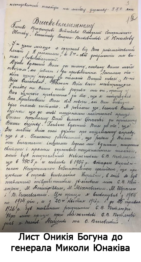 - Жив’юк А. Революція в особах. Оникій Богун : [Лист Оникія Богуна до генерала Миколи Юнаківа] [Електронний ресурс] / А. Жив’юк // Історична правда. – Електрон. текстові дані. – Режим доступу : https://www.istpravda.com.ua/articles/2018/11/19/153182. – 19 листопада 2018.