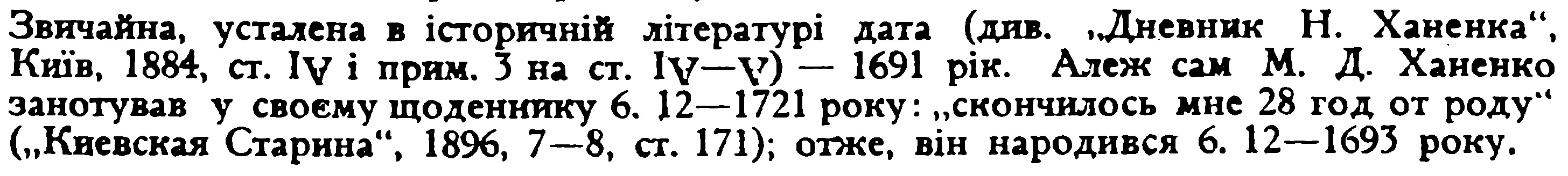 - Бодянський О. Историческое сведение о генеральном хорунжем, Николае Даниловиче Ханенко // Диариуш, или Журнал, то есть повседневная записка случающихся при дворе… - Москва : Университетская типография, 1858. – С. І-XXI.