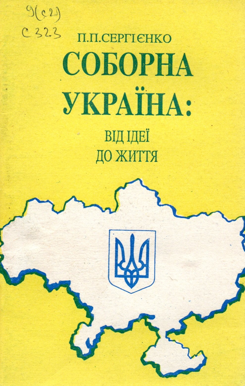 - Сергієнко П. П. Соборна України : від ідеї до життя / П. П. Сергієнко. – Київ : Т‑во “Знання” України, 1993. – 64 с. Шифр : 9(с2)/С323