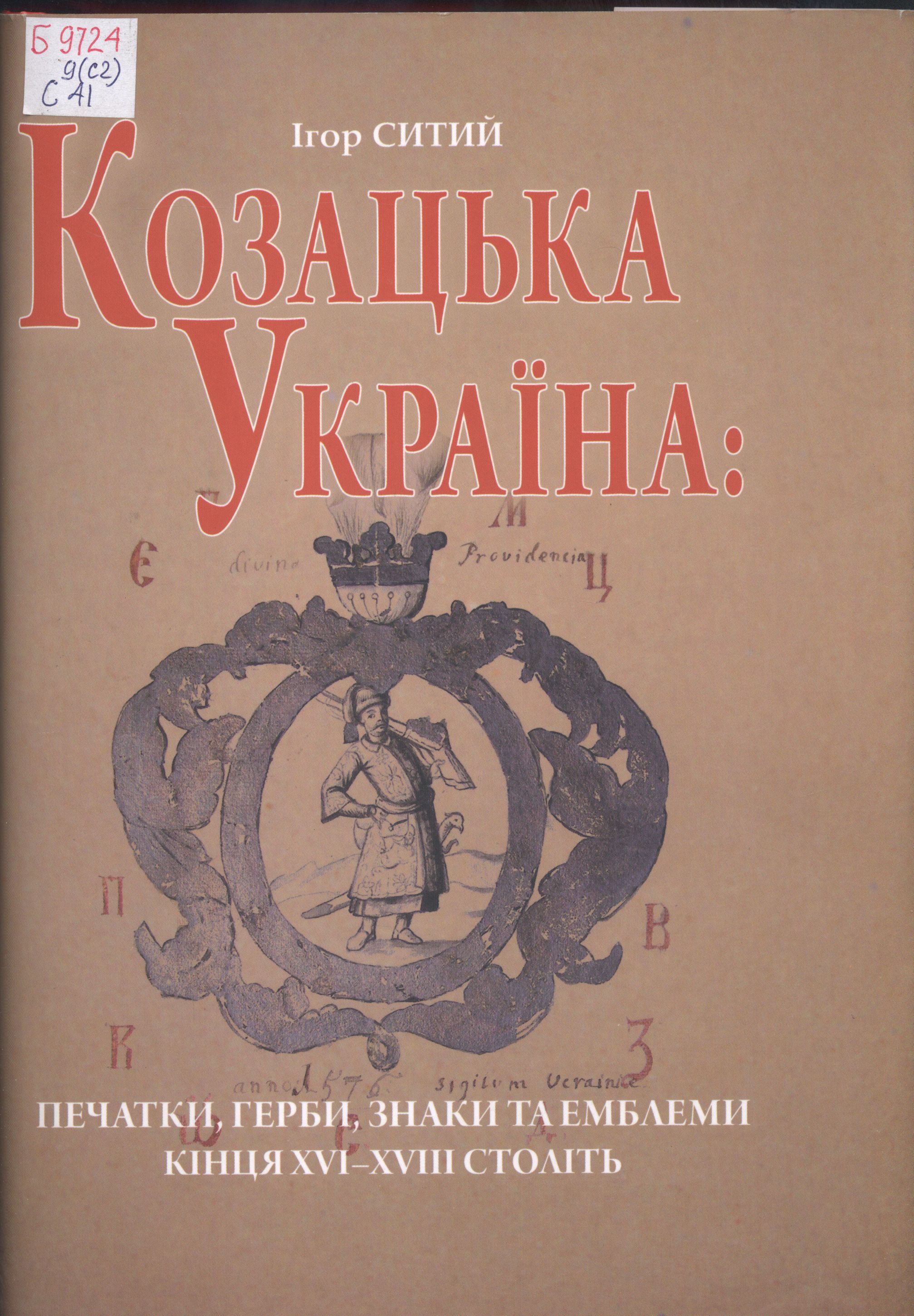 Ситий І. М. Козацька Україна: печатки, герби, знаки та емблеми кінця XVI–XVIII століть: [монографія] / Ігор Михайлович Ситий. – Київ : Темпора, 2017. – 969 с. : іл., факс. Шифр : Б9724 / 9(с2) / С41 Анотація : У монографії досліджуються печатки доби Гетьманщини та пов'язані з ними емблеми, знаки й символи. Сфрагіси були обов'язковим елементом суспільного життя козацької держави. Проте усе їх різноманіття лишається малодослідженим, а це заважає змалювати повноцінну картину громадсько-політичного життя Гетьманщини - однієї з історичних форм української державності. У дослідженні простежено історію сфрагістичних пам'яток Гетьманщини від державних до корпоративних та особистих, встановлено їхні загальні та відмінні риси, проведено аналіз основних суспільно-політичних закономірностей функціонування печаток Козацької доби та подано характеристику їх як особливого різновиду пам'яток матеріальної культури. |