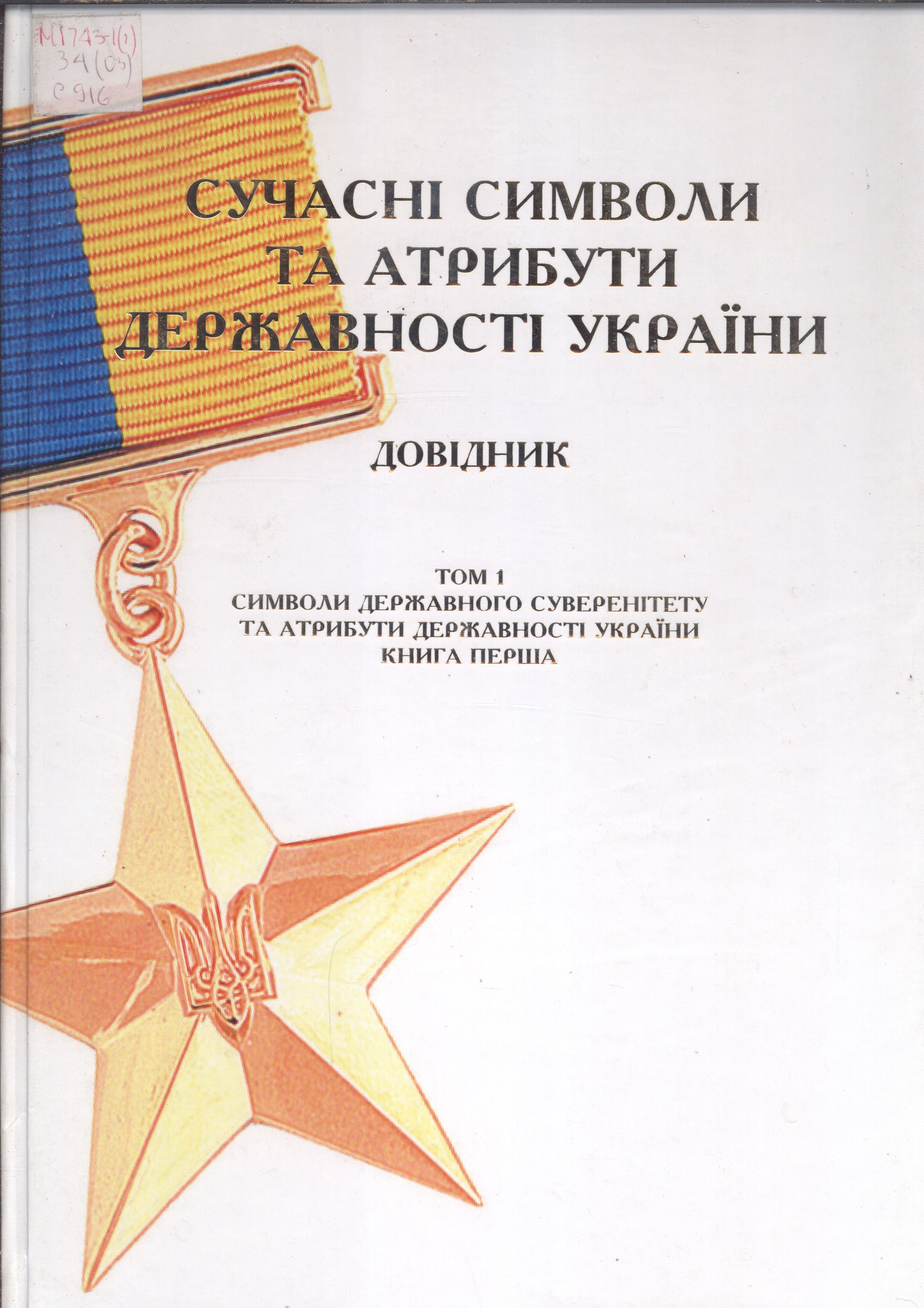 - 932. Сучасні символи та атрибути державності України : довідник : у 4 т. / уклад. В. В. Болгов. – Київ : Укр. вид. консорціум, 2008 – . Т. 1, кн. 1 : Символи державного суверенітету та атрибути державності України. – 176 с.