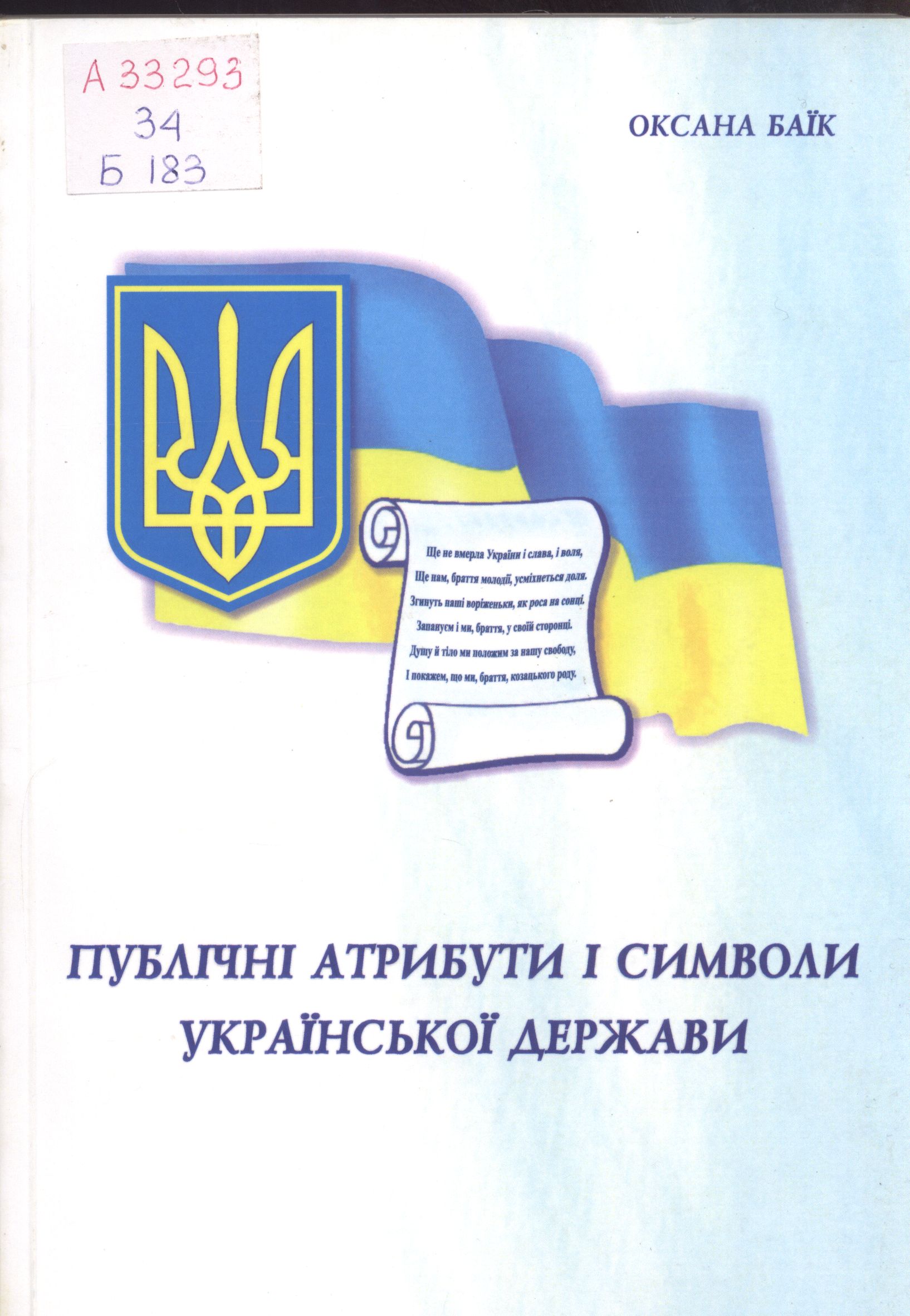 Баїк Оксана Іванівна. Публічні атрибути і символи Української держави: монографія / О. І. Баїк ; М-во освіти і науки України, Нац. ун-т “Львівська політехніка”. – Львів : Паіс, 2015. – 252 с. Шифр : А33293 / 34 Б183 Анотація : У монографії представлено й обґрунтовано розвиток правового регулювання застосування публічних атрибутів і символів Української держави від дохристиянських часів до сьогодення. |