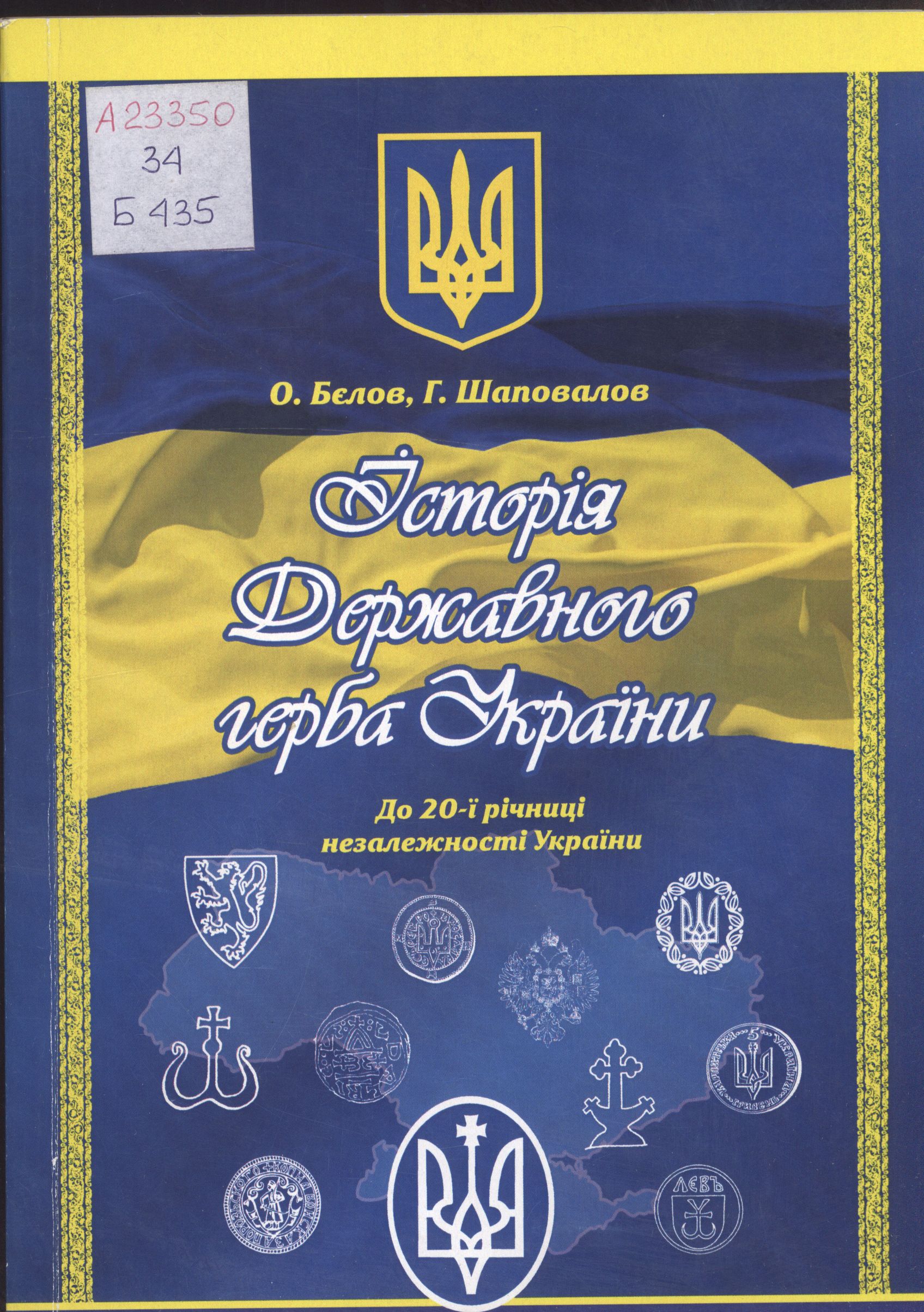 Бєлова О. Ф. Історія Державного герба України : до 20-ї річниці незалежності України: наук.-метод. посіб. / О. Ф. Бєлов, Г. І. Шаповалов ; М во культури України ; Укр. ін т нац. пам’яті ; Нац. музей історії України. – Запоріжжя : Тандем А А, 2011. – 92 с. : іл. Шифр : А23350 / 34/Б435 Анотація: Автори цього посібника здійснили справжній науковий прорив, запропонувавши історично обґрунтовану концепцію духовного змісту українського герба. В результаті багаторічних досліджень вони довели, що високе духовне вшанування нашого тризуба сягає прадавніх цивілізацій Середземномор’я і міцно пов'язане з обожнюванням сонця як творця життя (хрест) та предмета, який рятував життя - якоря (тризуб). |