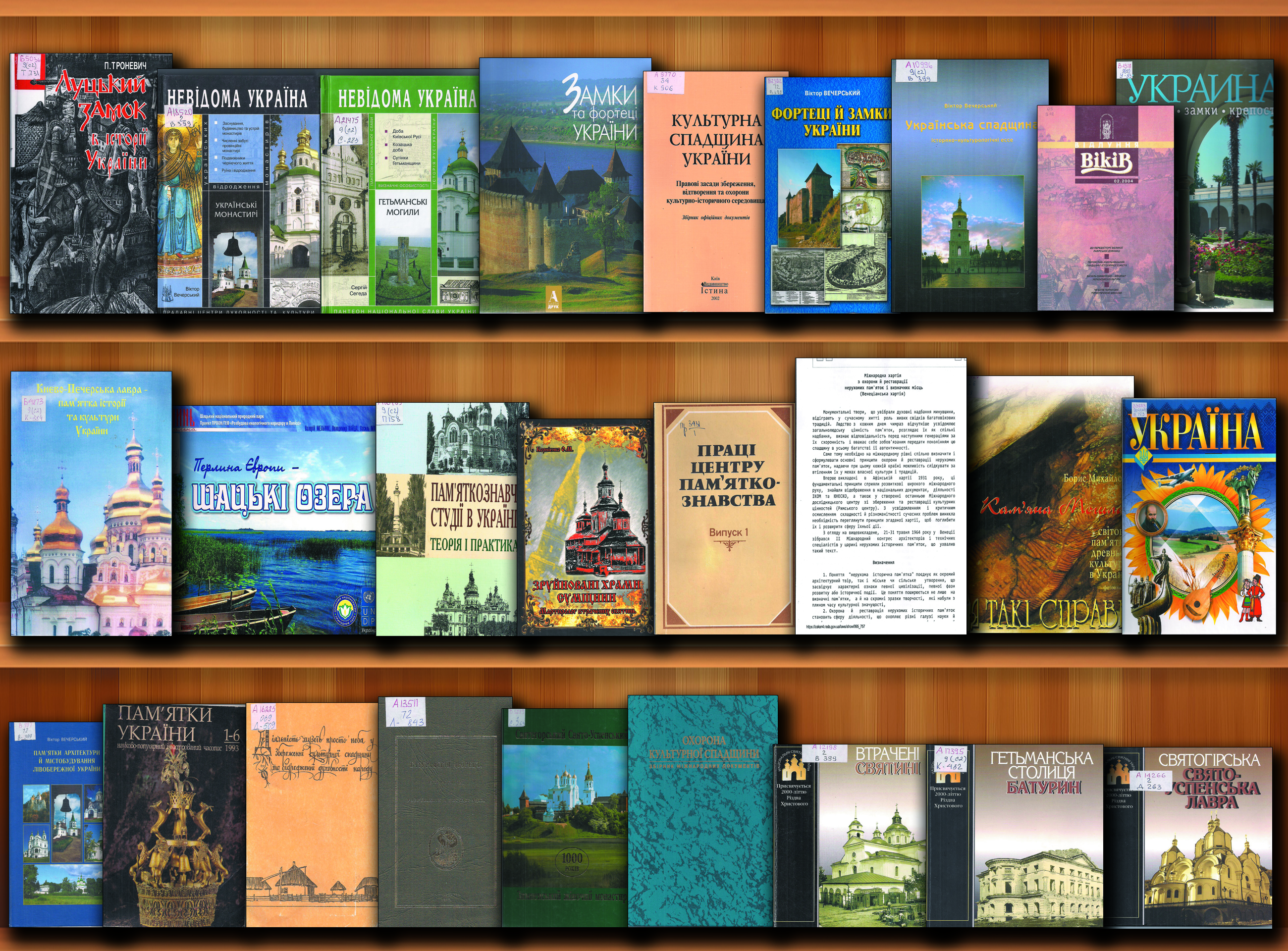 Вечерський В. В. Українська спадщина: Історико-культорологічні ессе / В. В. Вечерський; Інститут проблем сучасного мистецтва. - Київ, 2004. - 340 с.: іл..
