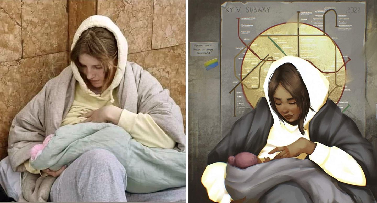 Цей образ надихнув художницю з Дніпра Марину Соломеннікову створити ілюстрацію «Київська мадонна у метро», яка не може залишити байдужим нікого, вражає людяністю і заряджає вірою в те, що життя продовжується!