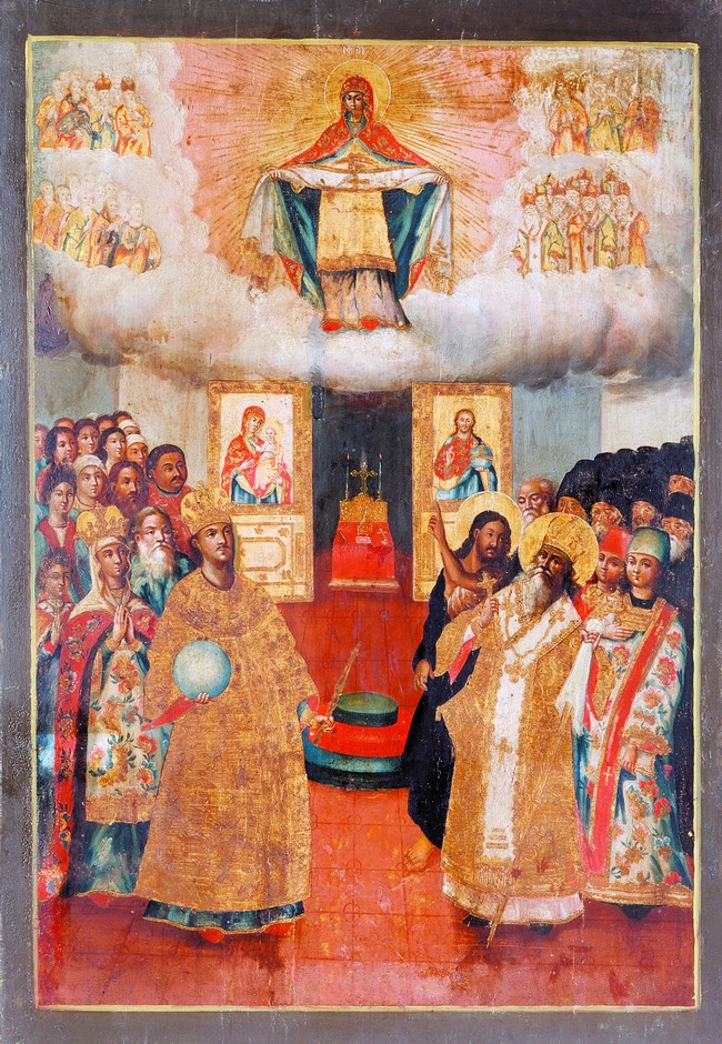 Образ Пресвятої Богородиці Покрови мав надзвичайне значення для українського козацтва. За свідченнями істориків, за часів існування Запорізької Січі було побудовано 13 храмів на честь Покрови, 8 - на честь Святого Миколая і лише 3 - Архистратига Михаїла. В іконописі того часу навіть виник термін «Козацька Покрова», де під омофором Божої Матері іконописці зображали відомих українських гетьманів, старшину та звичайних козаків. Донині в українських музеях ікон типу "Козацька Покрова" вціліло лише трохи більше десятка.