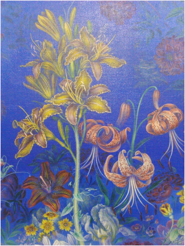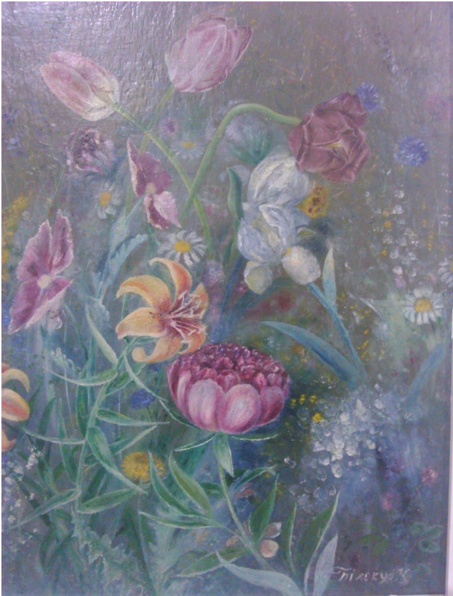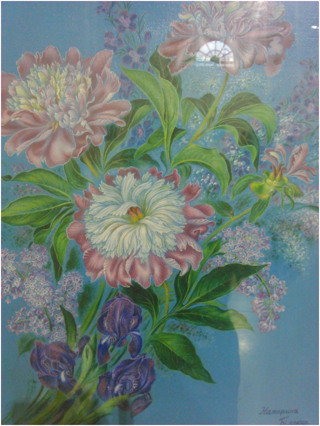 Її пензлю був підвладний портрет, пейзаж, натюрморт. Та особливу мистецьку галактику Катерина Білокур створювала з квітів. На своїх картинах вона щедро посіяла найулюбленіші квіти української землі – калину, мальви, півонії, жоржини, нагідки, ромашки, чорнобривці, барвінок, кручені паничі, колосся жита, пшениці, ячменю, головки соняшників…