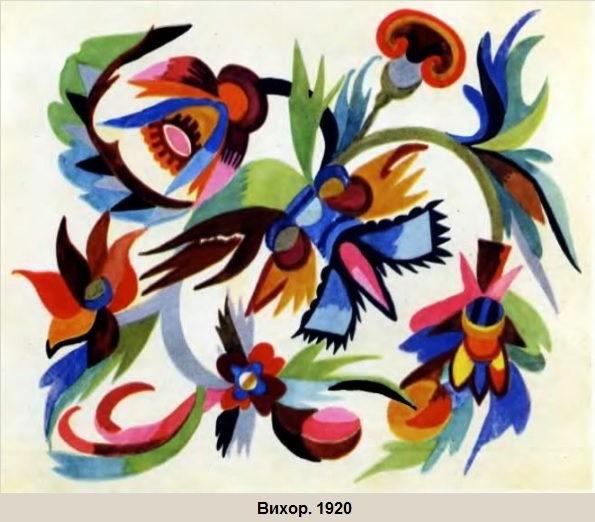 Ці твори народились в результаті грандіозного експерименту - співпраці провідних художників авангарду Олександри Екстер, Казимира Малевича, Любові Попової, Ольги Розанової, Надії Удальцової та самобутніх народних майстрів Ганни Собачко-Шостак, Євмена Пшеченка, Василя Довгошиї, Параски Власенко.
