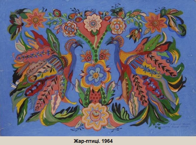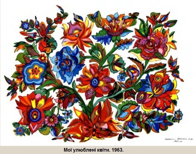 Вона малювала чудернацькі квіти: одна квітка вплітається в іншу й перетворюється на казкових птахів, риб чи людей – усе в найкращих традиціях народних орнаментів, які передають колорит і багатство нашої природи.