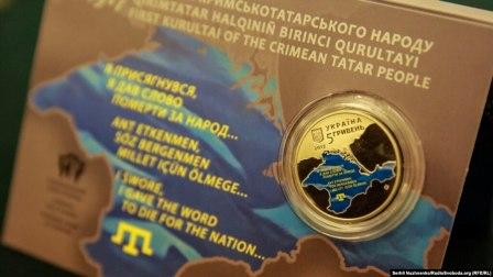 10. НБУ презентував монету на честь 100-річчя першого Курултаю кримськотатарського народу [Електронний ресурс] / фото: Сергій Нужненко ; Радіо Свобода.Новини. – Дата публікації: 22.11.2017. – Режим доступу: https://www.radiosvoboda.org/a/news/28870492.html. – (Дата перегляду: 25.06.2022). Зі змісту: У презентації, яка відбувалася в музеї грошей НБУ взяли участь, серед інших, голова Меджлісу кримськотатарського народу, народний депутат України Рефат Чубаров, члени Меджлісу кримськотатарського народу. Кабінет міністрів України 22 листопада затвердив план святкування 100‑річчя з часу проведення Першого Курултаю кримськотатарського народу, який передбачає проведення урочистого засідання Верховної Ради 6 грудня. Курултай кримськотатарського народу – національні збори, вищий представницький повноважний орган кримськотатарського народу. У грудні 1917 року Курултай кримськотатарського народу затвердив національний прапор блакитного кольору, національний герб у вигляді золотої тамги кримських ханів і національний гімн.