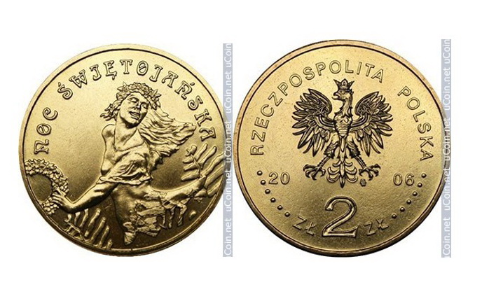 Монета номіналом 2 злотих, Польща, 2006, «Польські ритуали – Івана Купала», латунь.