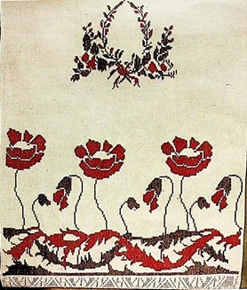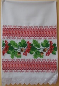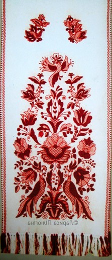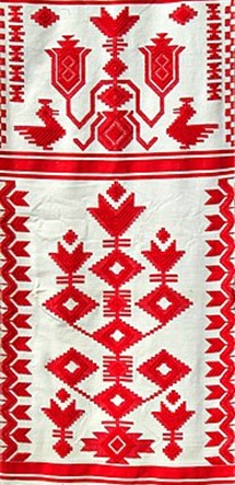 Кролевецький тканий рушник (фрагмент) Вікторії Гавриленко Зображення з сайту: https://uk.m.wikipedia.org/wiki/Файл:64_Рушник_кролевецький_тканий,_обрядовий.50-ті_роки_ХХ_ст..jpg |