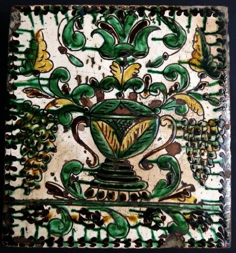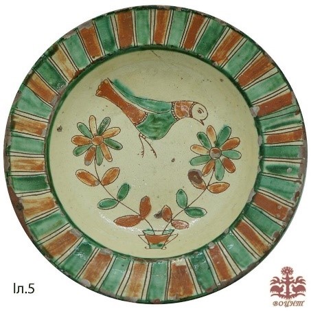 | Пічні кахлі Олекси Бахматюка. Косів. ХІХ ст. Зберігаються у Косівському музеї Гуцульщини Зображення з сайту: https://huculia.info/kosiv-painted-ceramics/ |